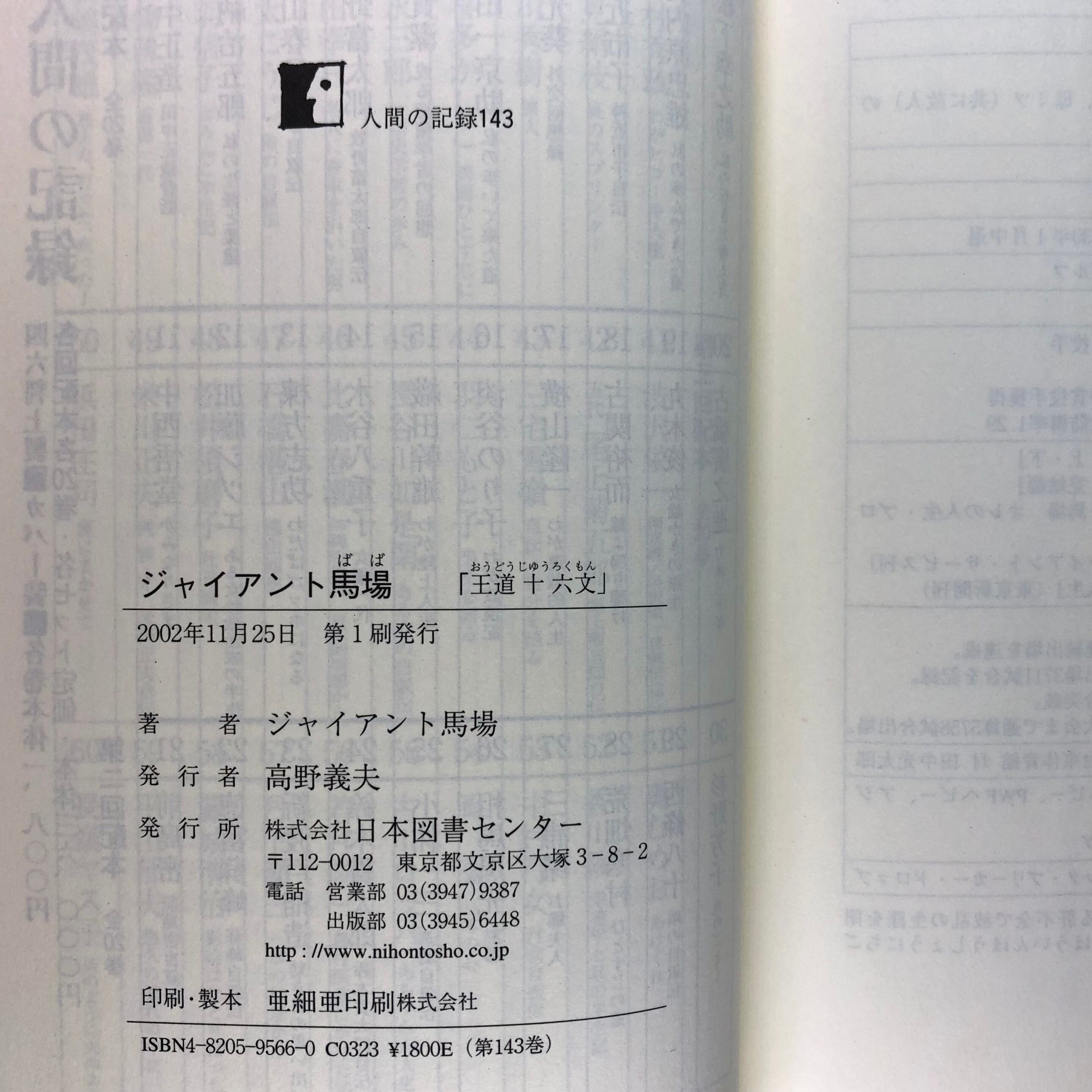 ジャイアント馬場著 2002年11月25日初版 日本図書センター 全356頁 13.5×19.5×2.5センチ