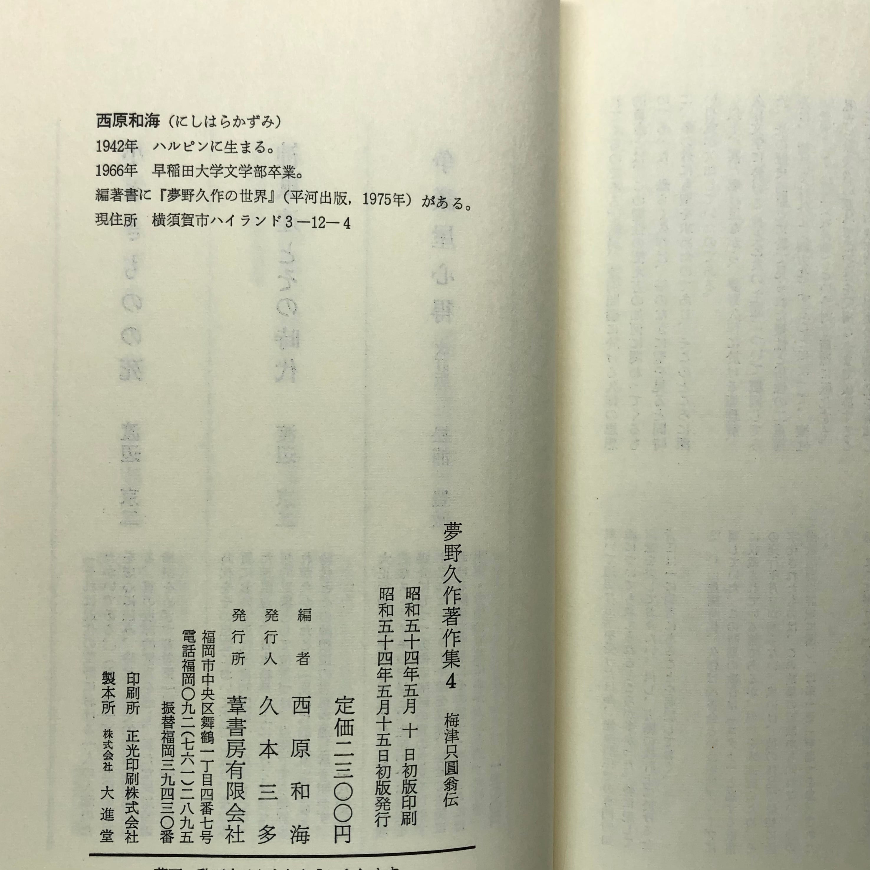 夢野久作著 昭和54年5月15日初版 葦書房 全351頁 14×20×2.5センチ