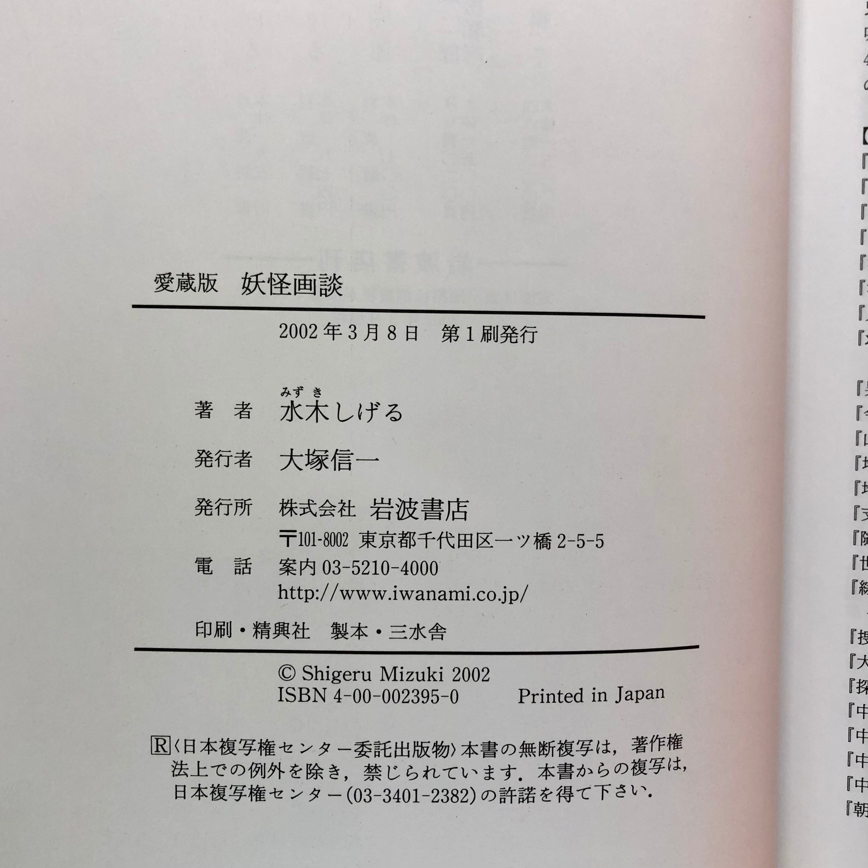 水木しげる著 2002年3月8日初版 岩波書店 全468頁 15.5×22×2.8センチ