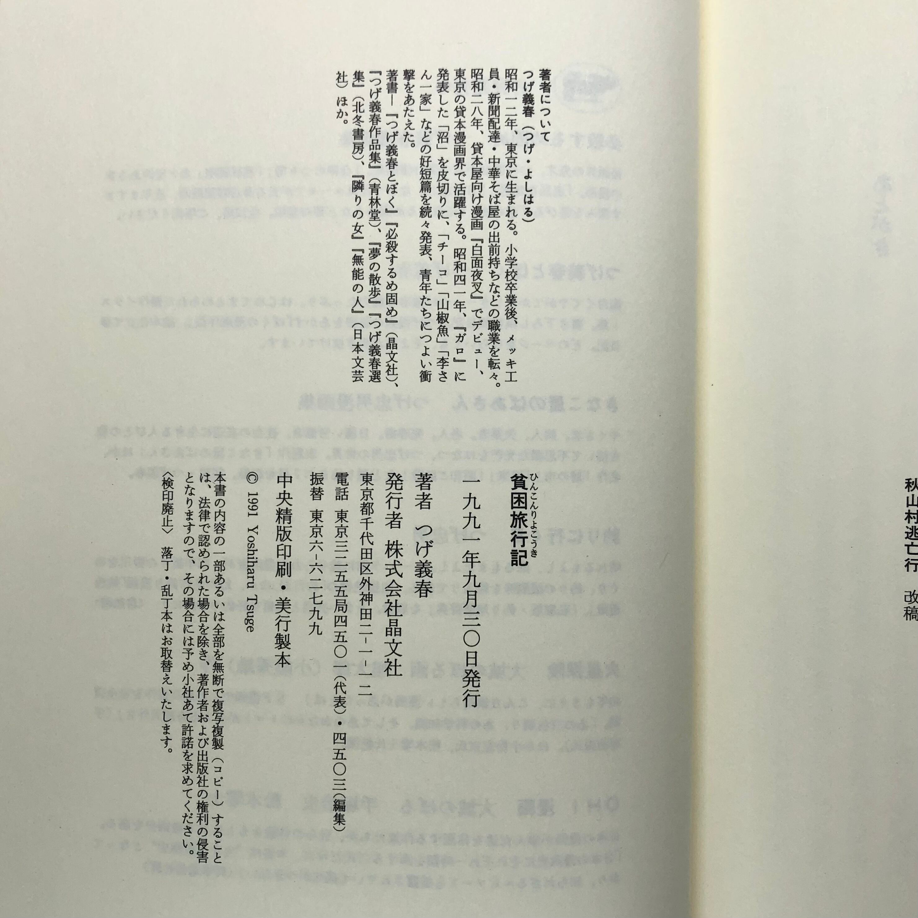 つげ義春著 1991年9月30日初版 昌文社 全193頁 16×21.5×2センチ