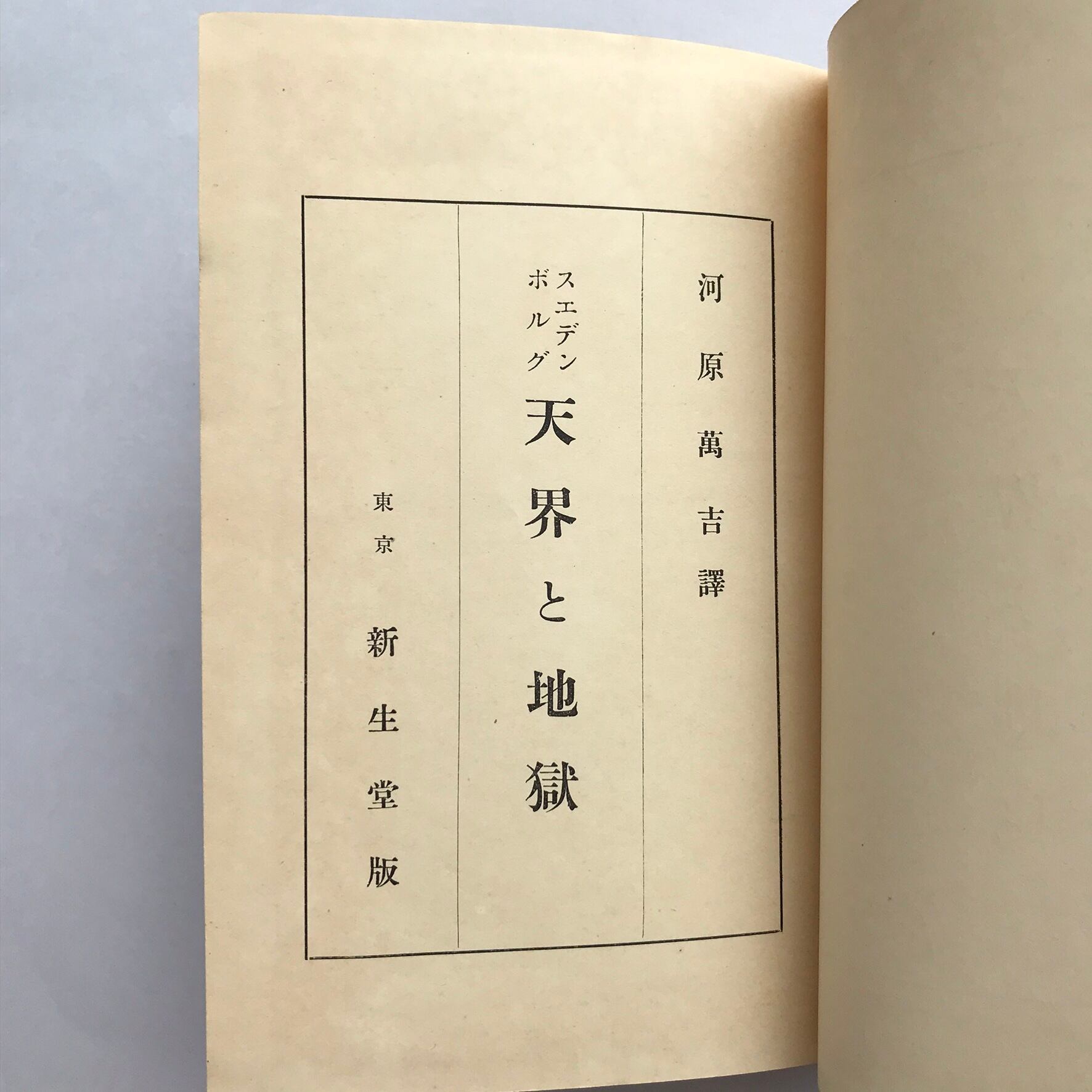 スエデンボルグ 河原萬吉訳 昭和5年9月17日初版 新生堂。全309ページ 約14×20×2cm。