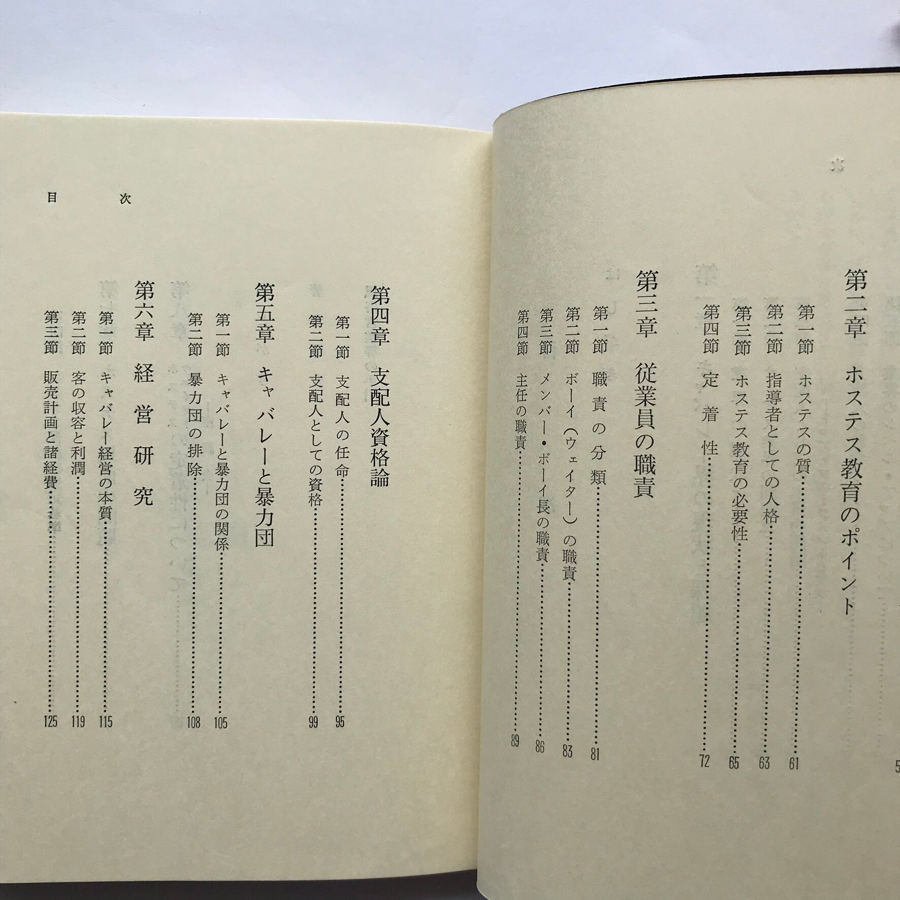 著者の「すばらしいホステスになるために」は、ホステスの教科書として業界のベストセラーとなる。バー組合や社交ゼミナールの講師として活躍。本書内容はキャバレー界の現状と課題・ホステス教育のポイント・キャバレーと暴力団等々。