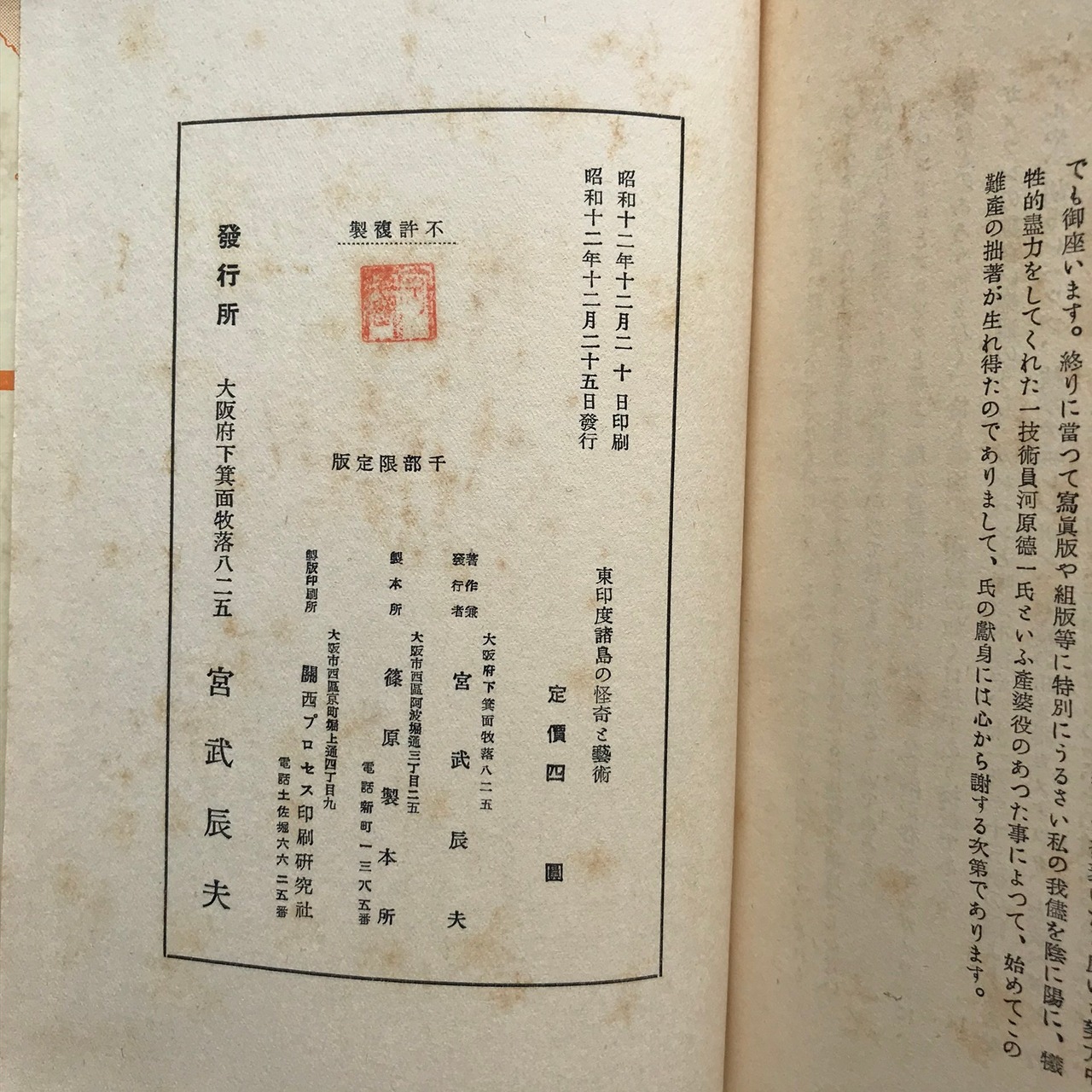 宮武辰夫著 昭和12年12月25日発行。 全256ページ 15×20×3.3センチ。