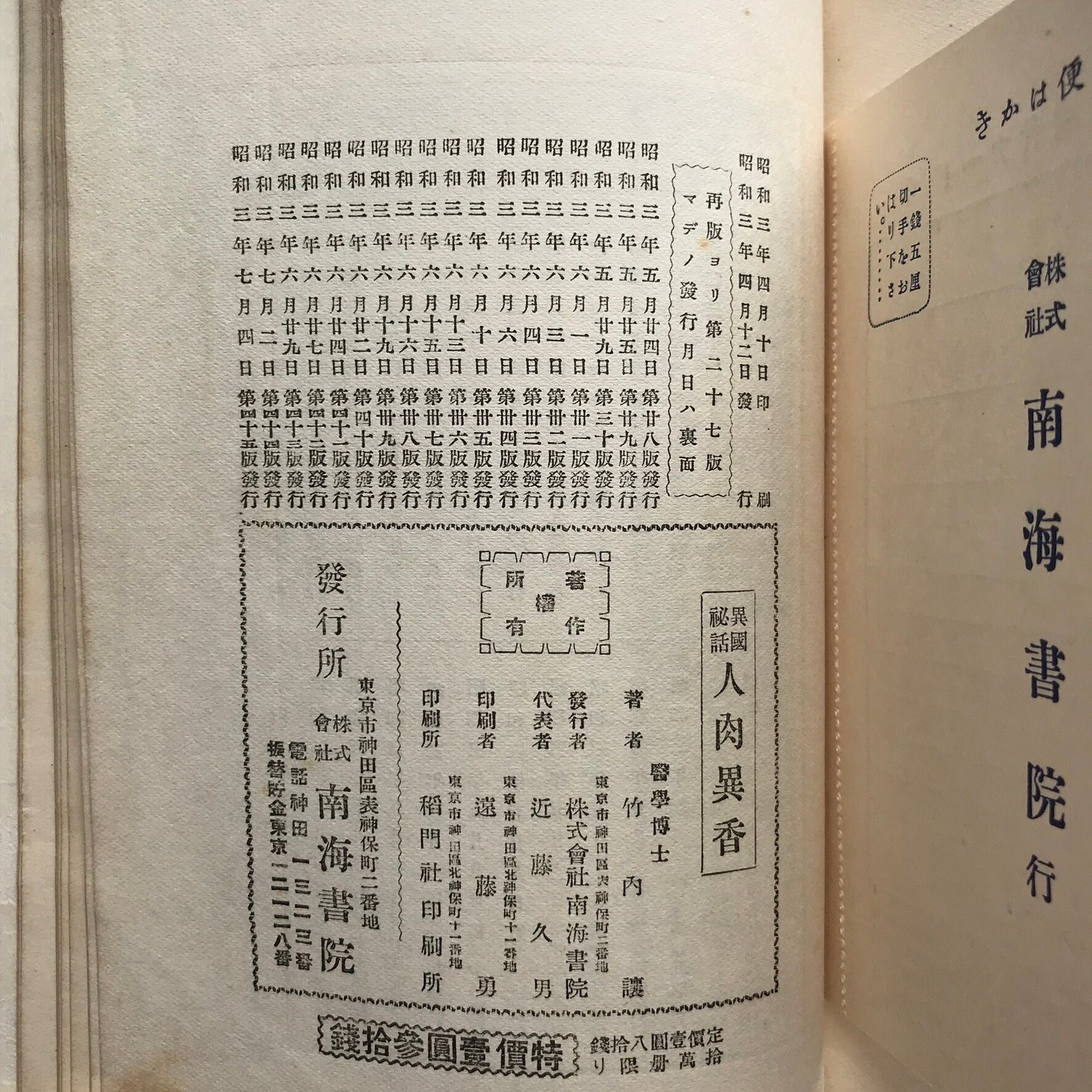 竹内譲著 昭和3年7月4日第45版 南海書院 13×19×2.5センチ。
