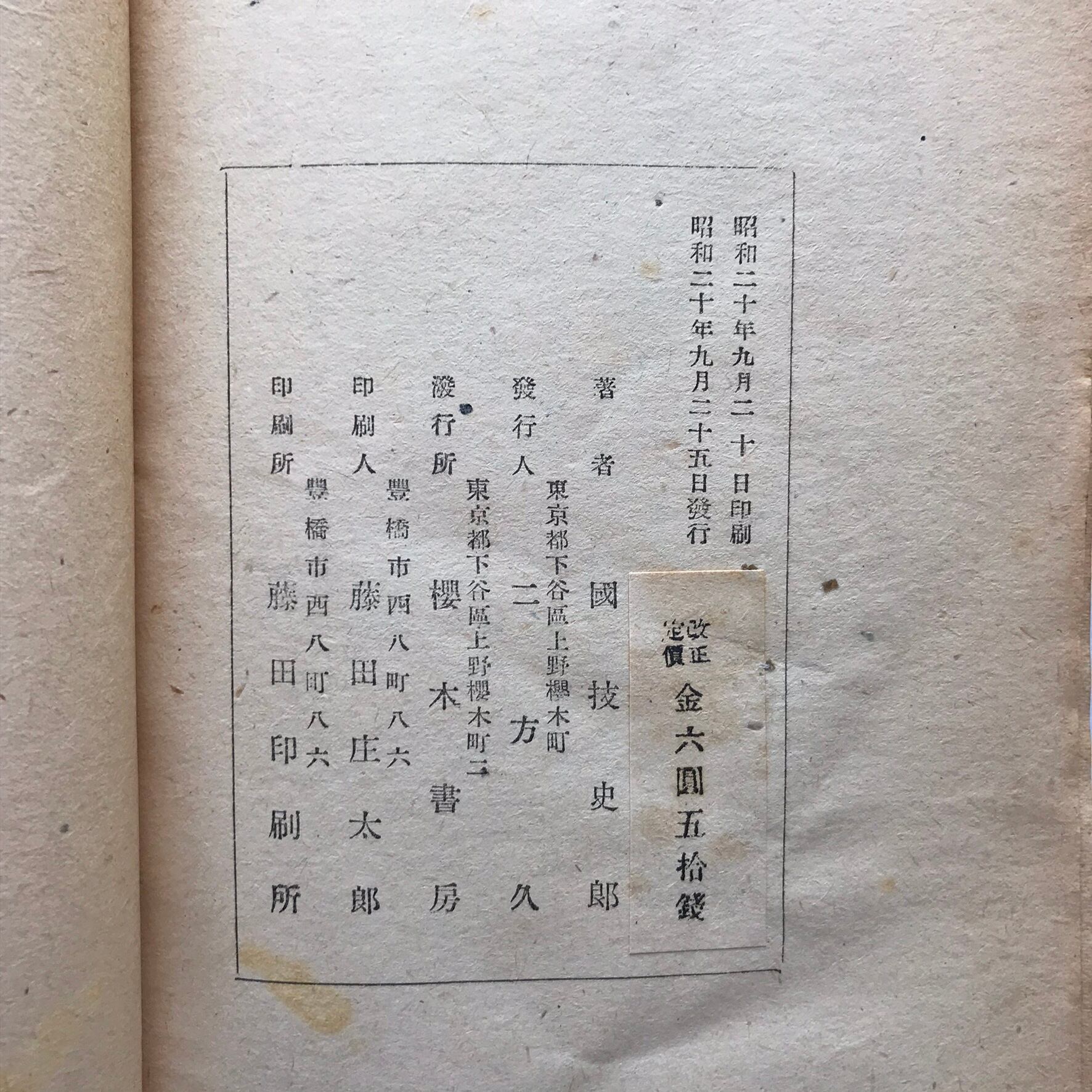 國枝史朗著 昭和20年9月25日初版 櫻木書店 全147頁 13×18×0.8センチ