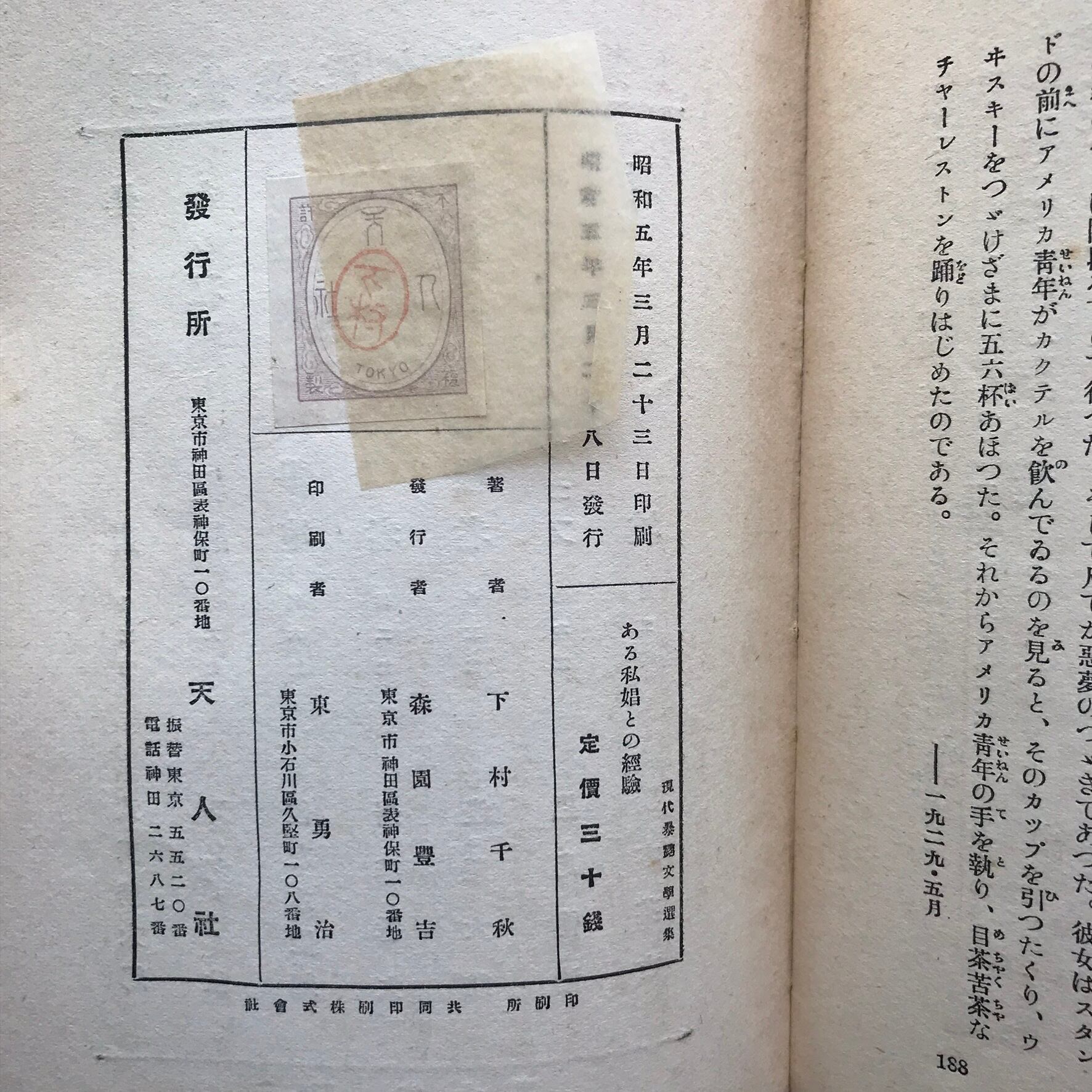 現代暴露文学選集の1冊 表題作の他、統計から覗いた暗黒街、或るダンサーの科学的ミステリー、徹宵闘争、粉雪の降る夜。等々 発禁本のため3編15行削除。