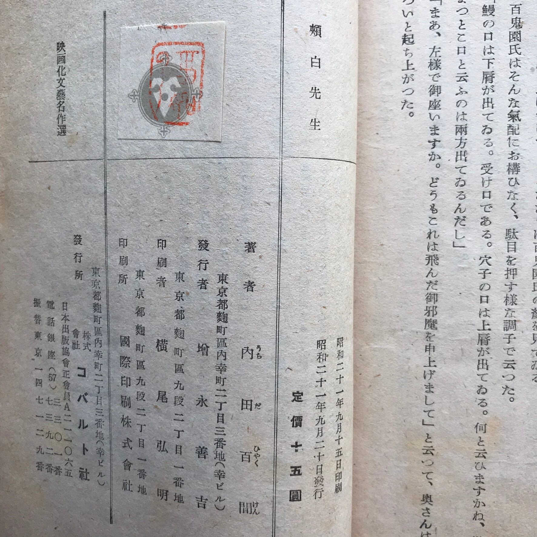 内田百閒著 昭和21年9月20日初版 コバルト社 全198頁 13×18.5×1センチ