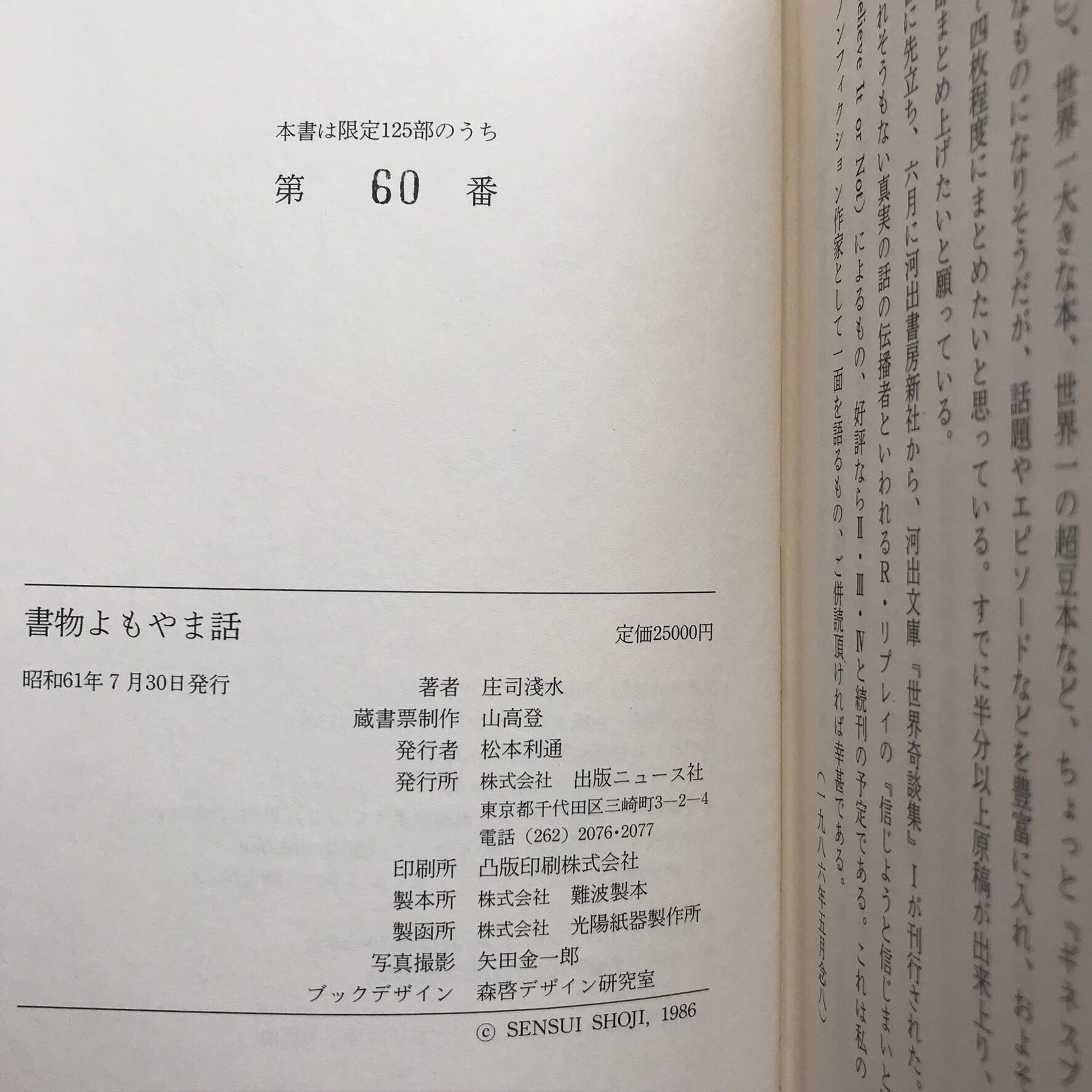 庄司浅水著 昭和61年7月30日発行 出版ニユース社 全372頁 16×22×4センチ