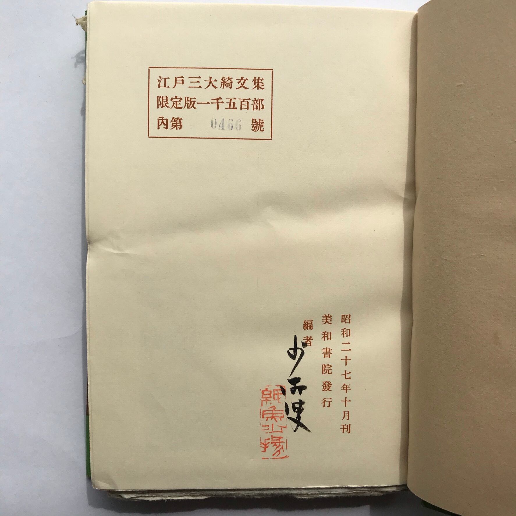 斎藤昌三署名落款 限定1500部の内466番 「はこやのひめごと」「あなおかし」「逸著聞集」