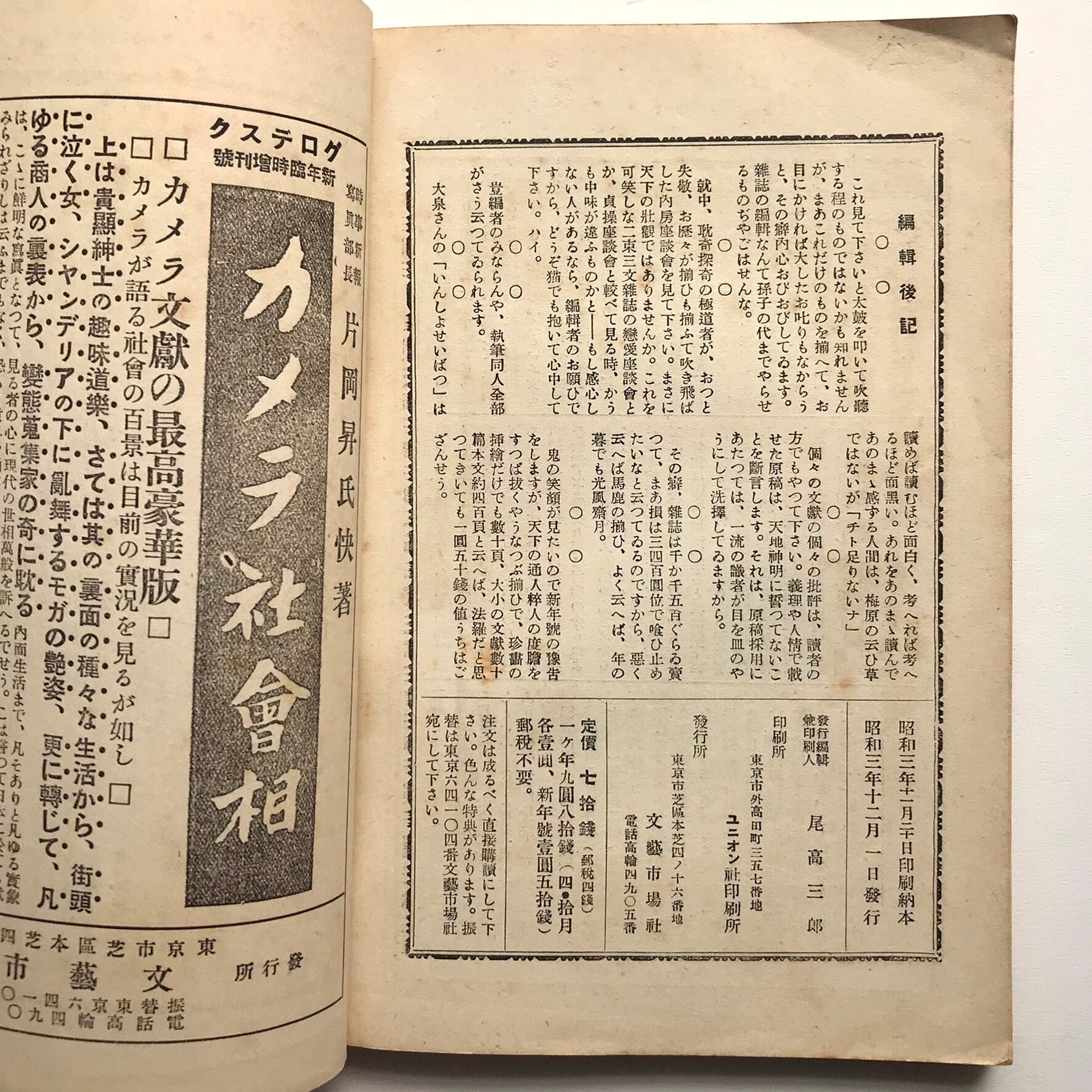 発行編集・尾高三郎 昭和3年12月1日 文藝市場社 全199頁 15×22×1センチ
