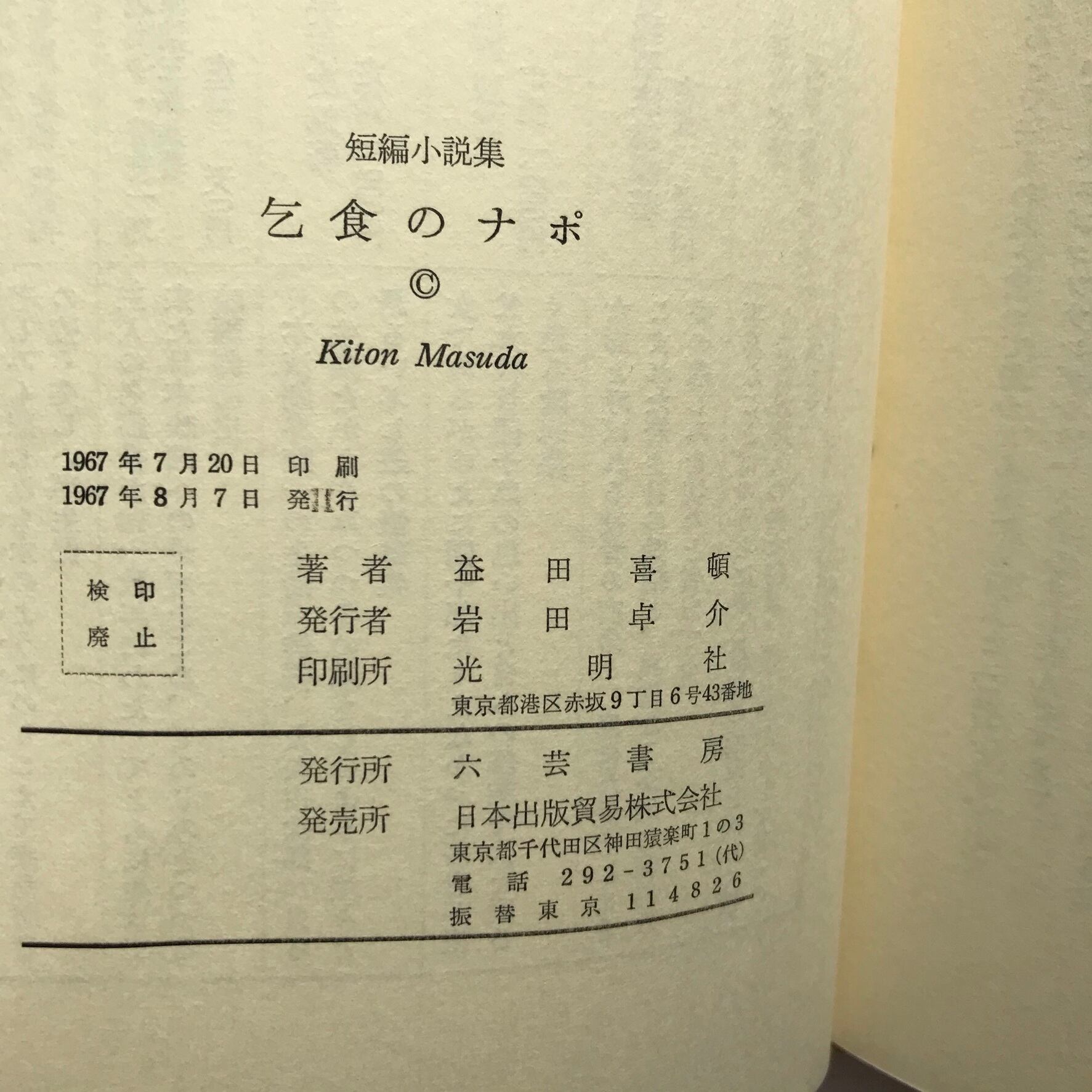 益田喜頓著 1967年8月7日初版 六芸書房 全221頁 13×19×2センチ