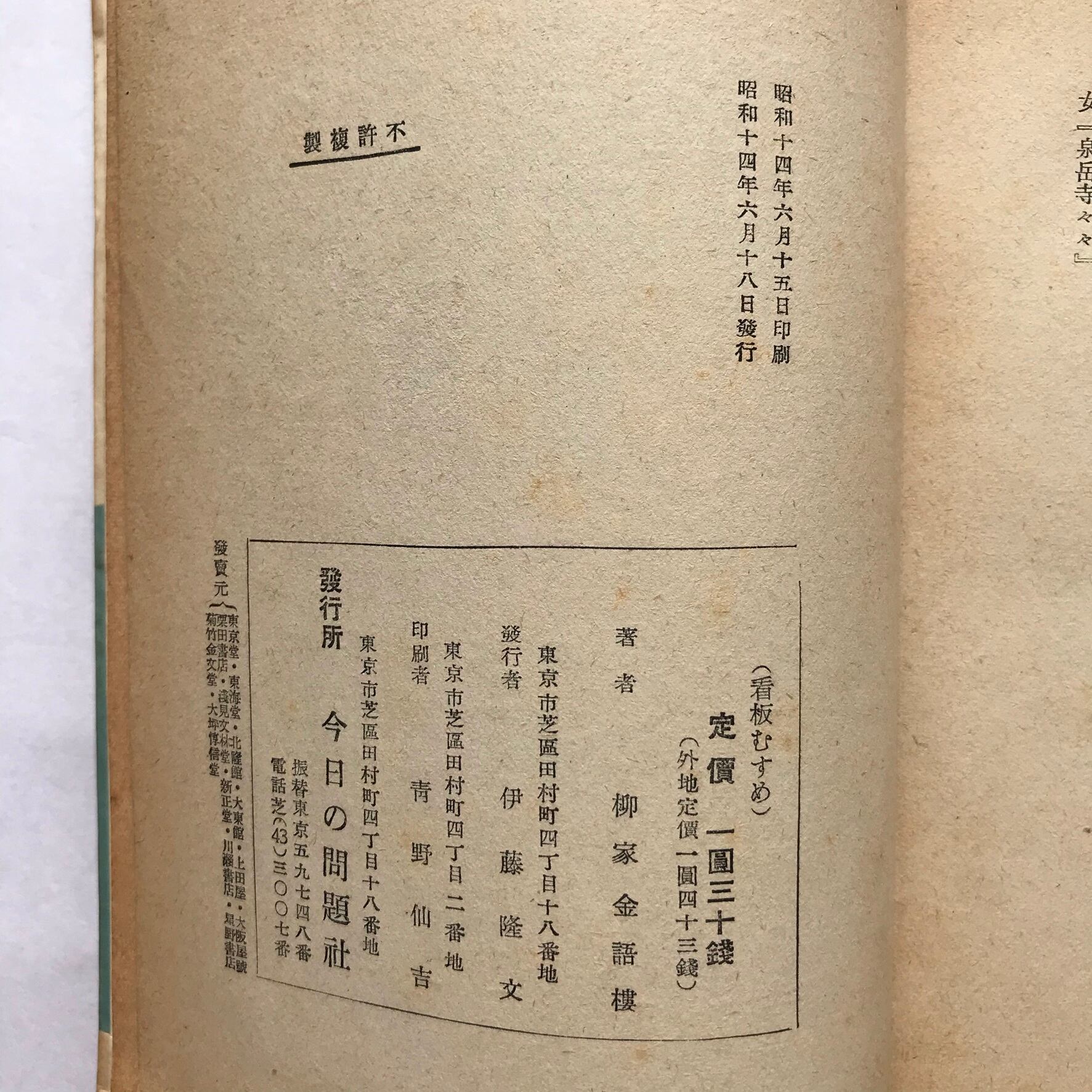 柳家金語楼著 昭和14年6月18日初版 今日の問題社 全312頁 13.5×19×2.6センチ