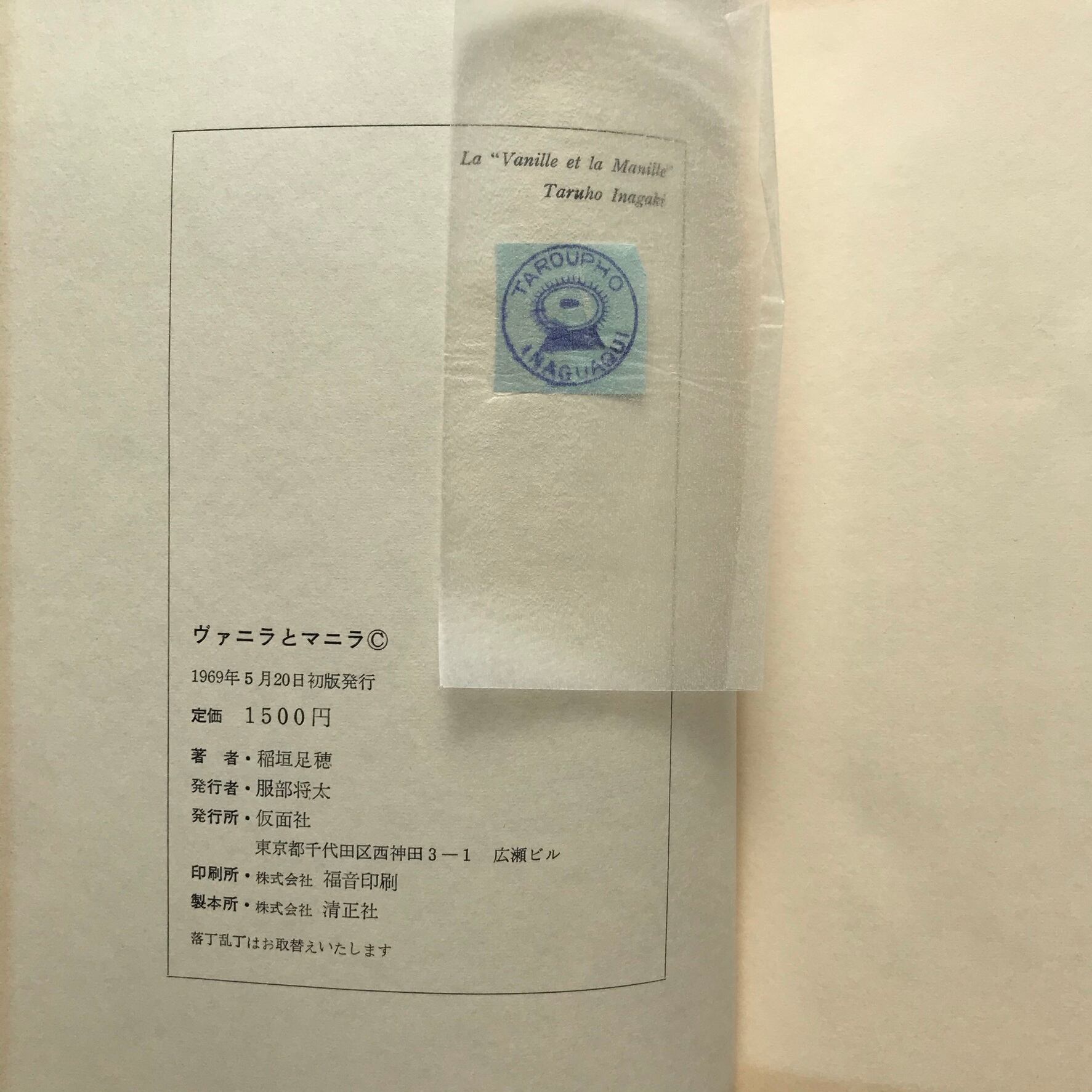 稲垣足穂著 1969年5月20日初版 仮面社 全252頁 16×22.5×3センチ