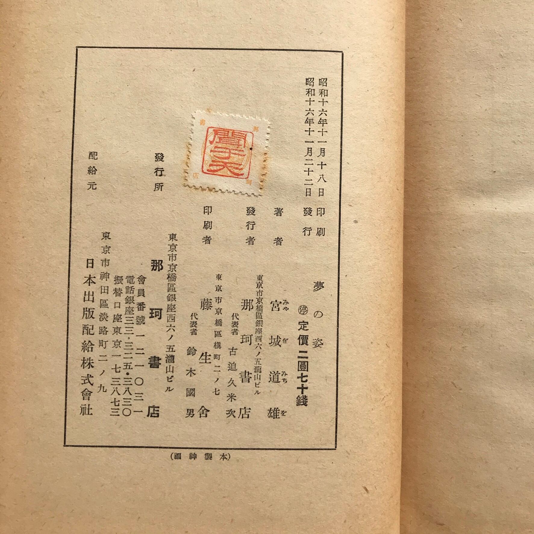 宮城道雄著 昭和16年11月22日初版 那珂書店 全363頁 14×19×2.7センチ