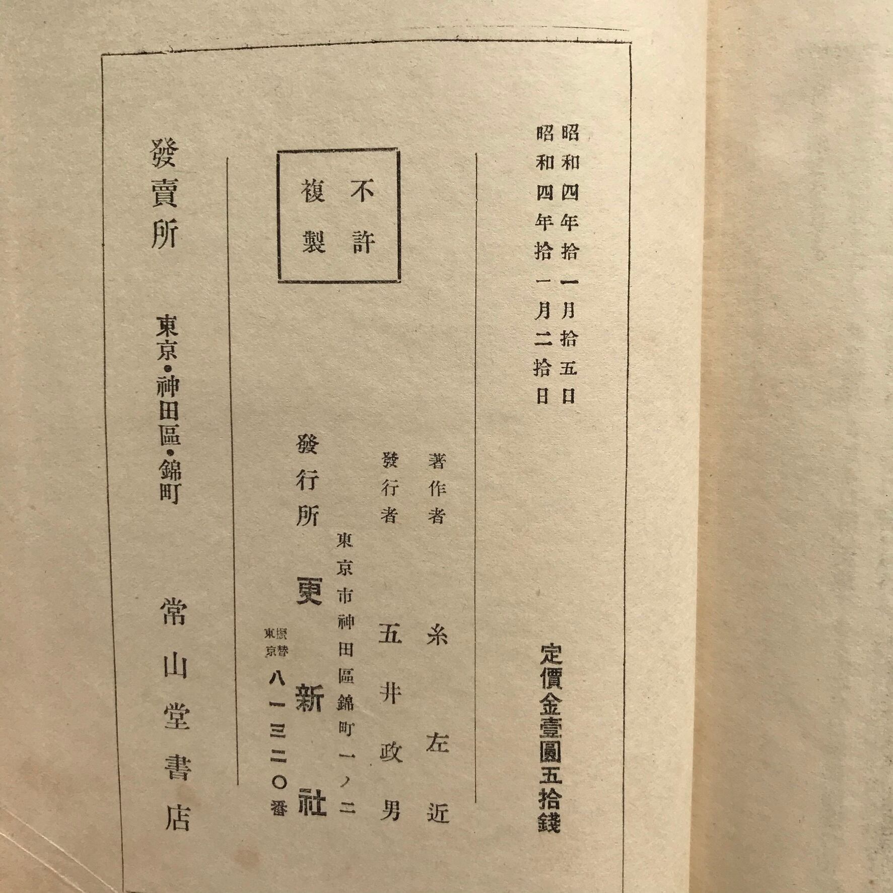 糸左近著 昭和4年11月20日初版 更新社 全325頁 14×20×2センチ