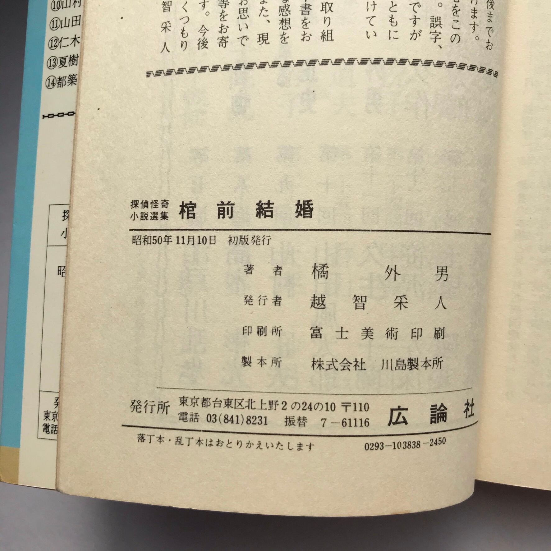 橘 外男著 昭和50年11月10日初版 広論社 全290頁 10.5×17×2センチ