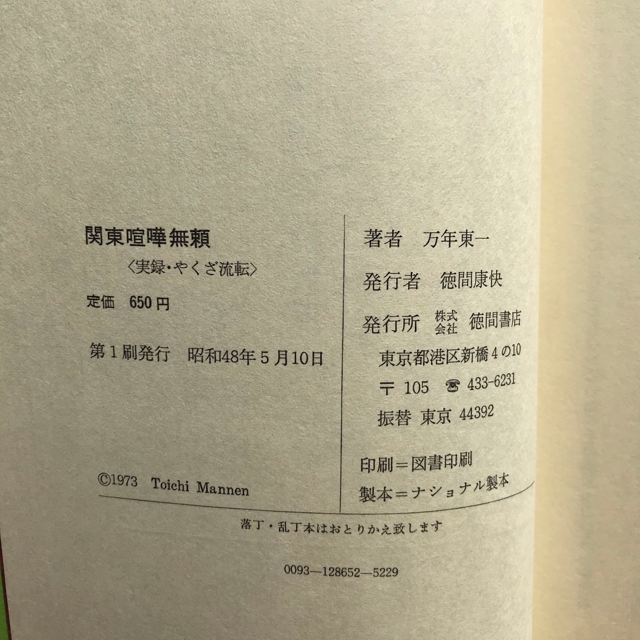 万年東一著 昭和48年5月10日初版 徳間書店 全222頁 13×18×1.7センチ