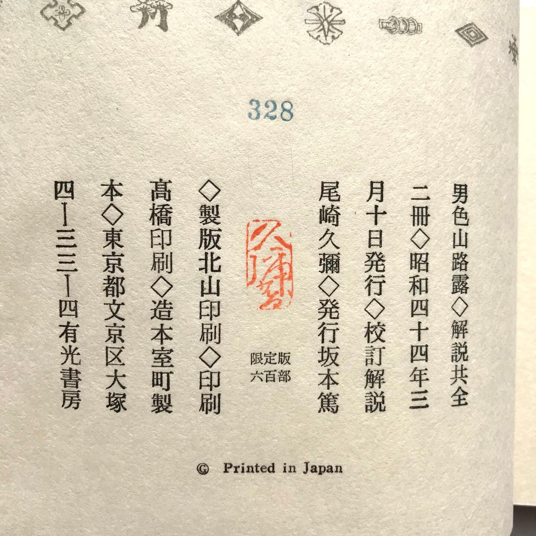 尾崎久彌・校訂解説 昭和44年3月10日発行 有光書房 全147頁 14×20.5×3センチ