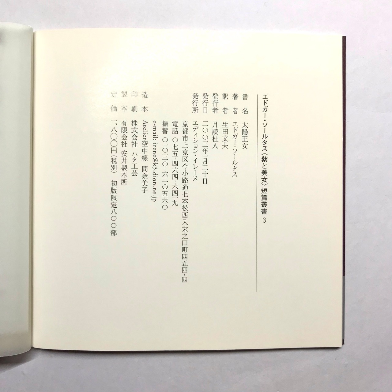 太陽王女 エドガー・ソールタス<紫と美女>短編叢書Ⅲ サイン