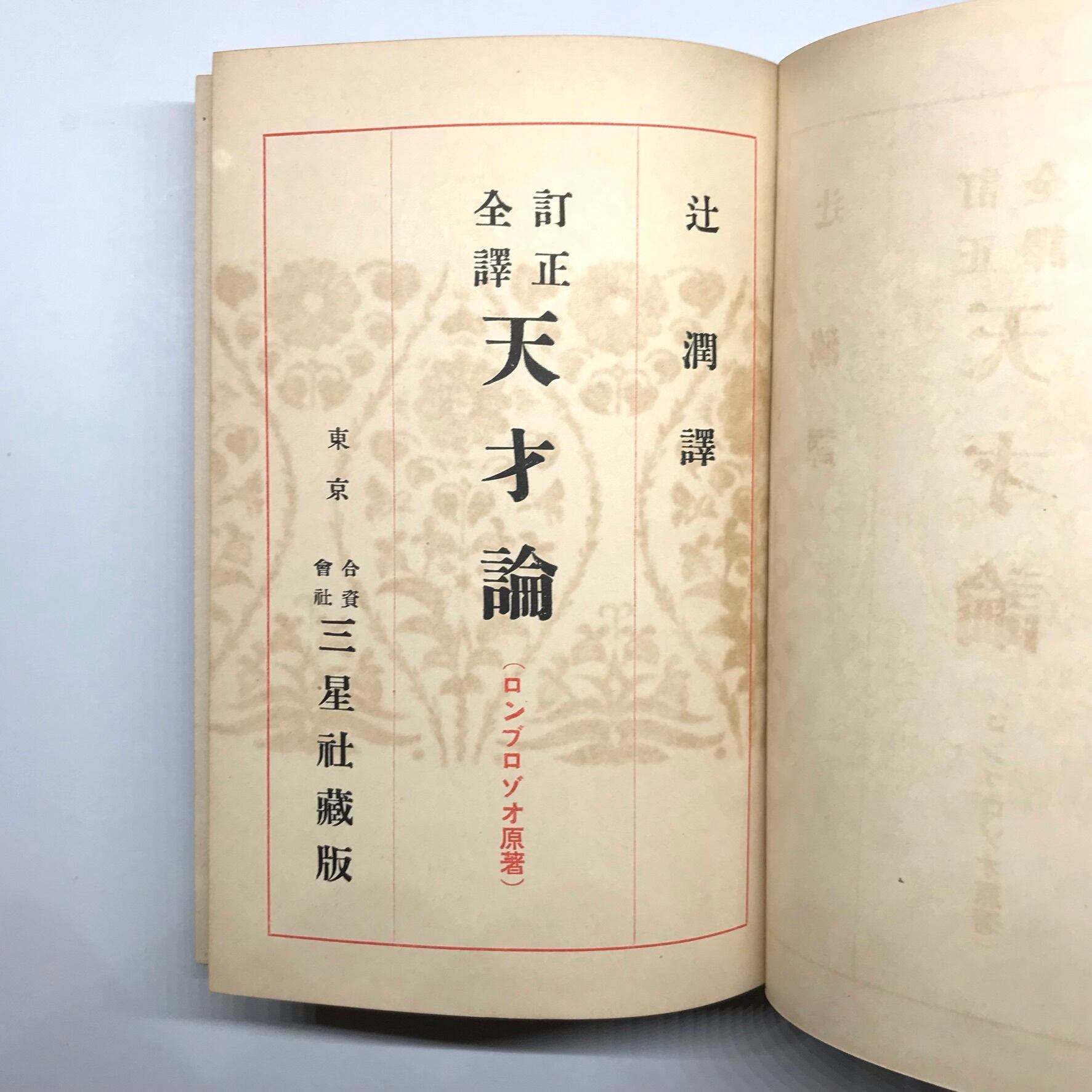 ロンブロゾオ著 辻潤訳 大正11年7月10日訂正13版。全343頁 13.5×20×2.5センチ