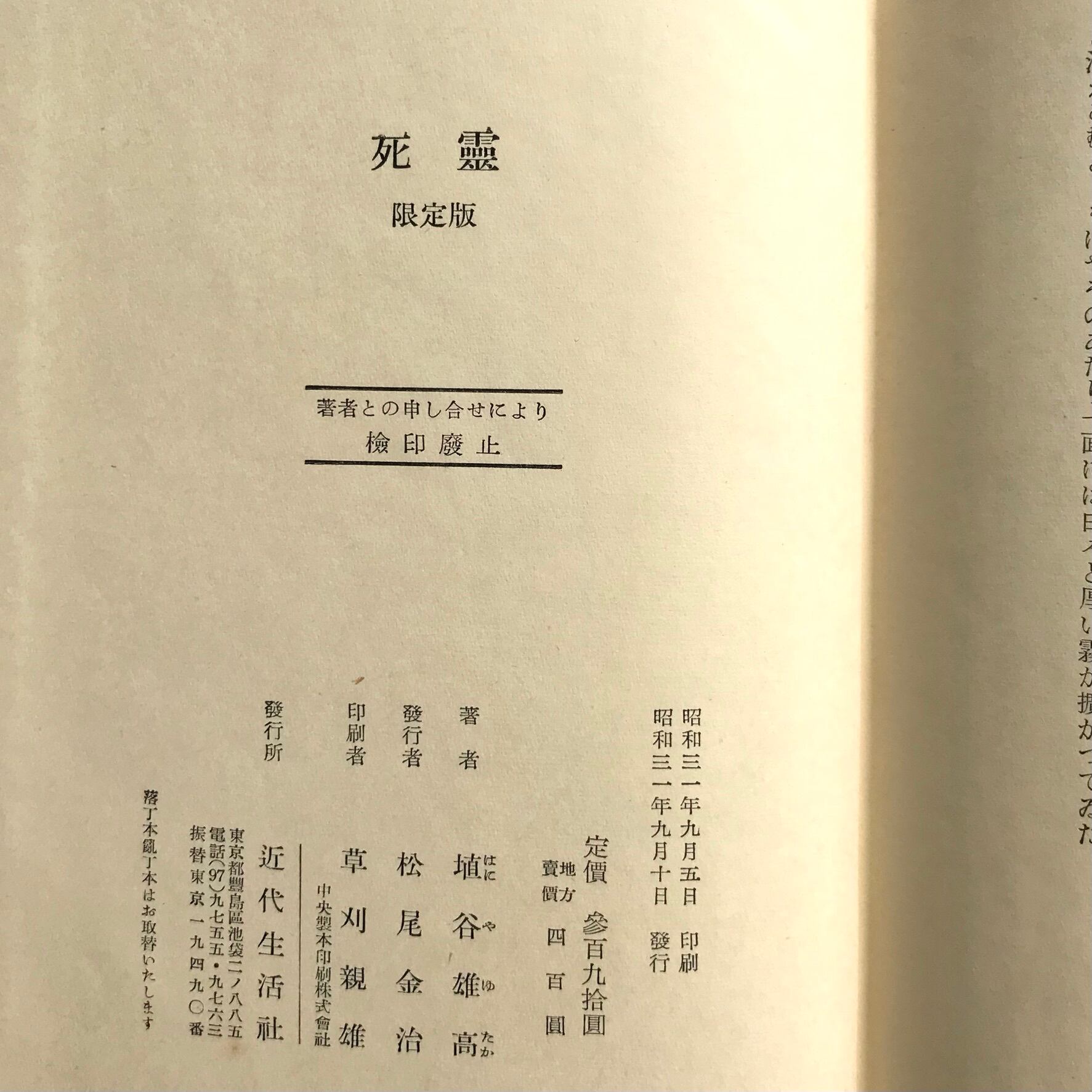埴谷雄高著 昭和31年9月10日初版 近代生活社 全374頁 14×20×2.3センチ