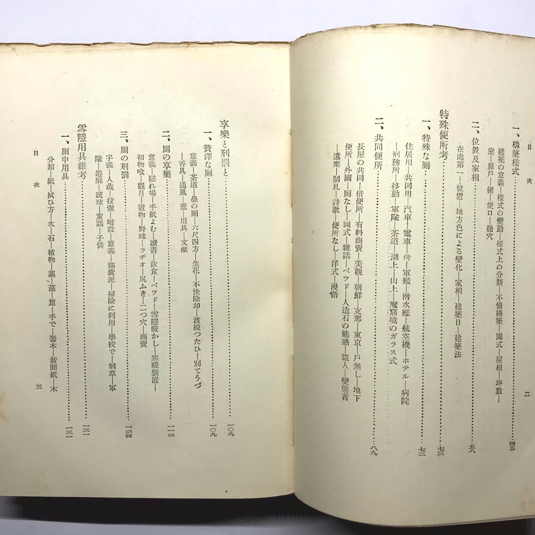 字義及び起原 建築様式並家相 特殊便所考 京楽と刑罰と 雪隠用具雑考 便所怪異事件