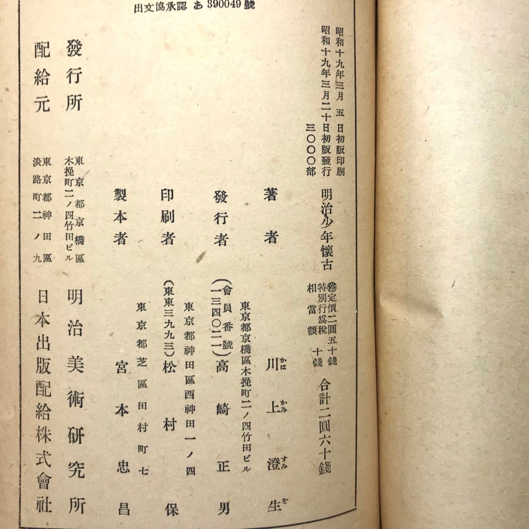 川上澄生著 昭和19年3月20日初版 明治美術研究所 全119頁 13×18.5×1センチ