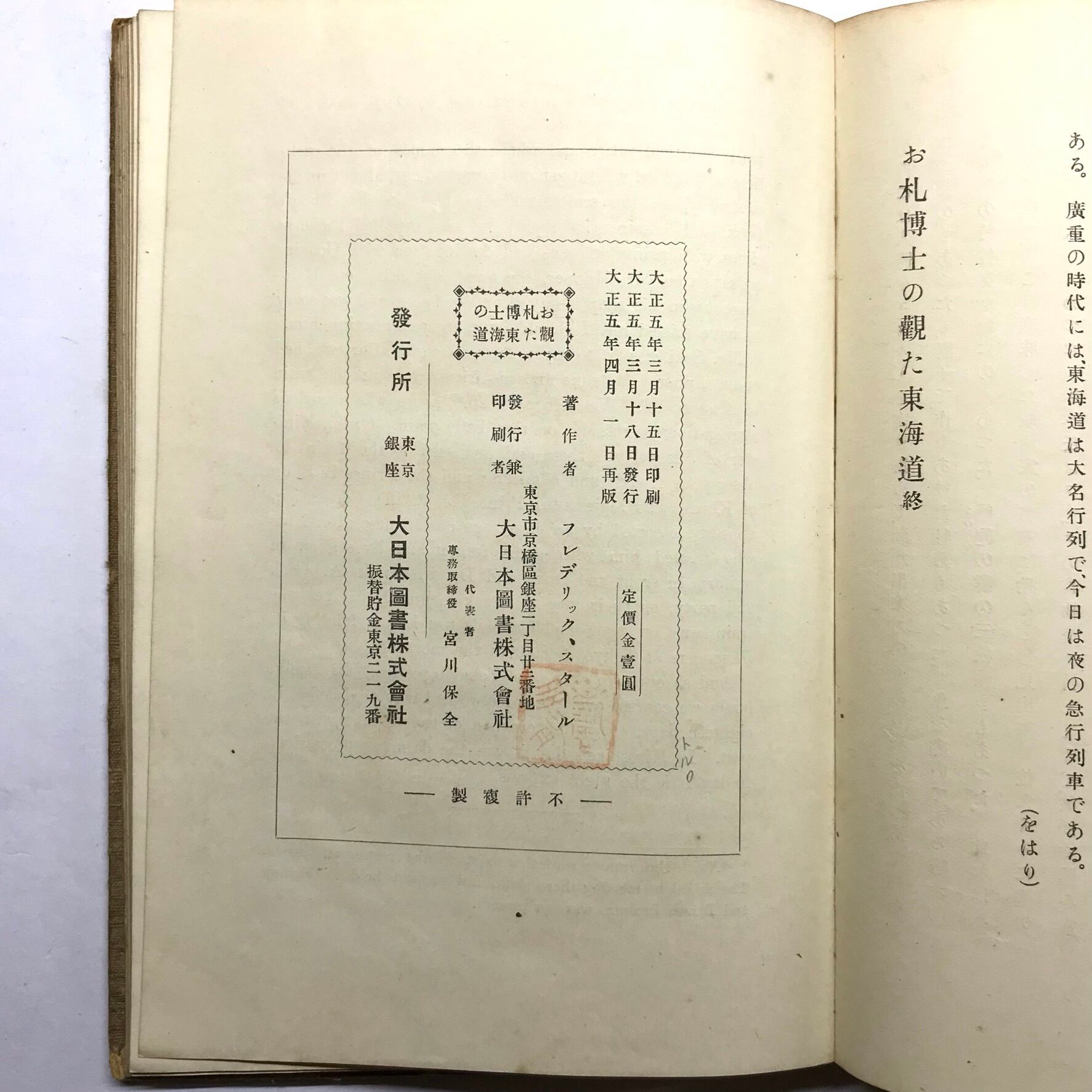 フレデリック・スタール著 大正5年4月1日再版 大日本国書 全202頁+英文93頁 13×19×1.5
