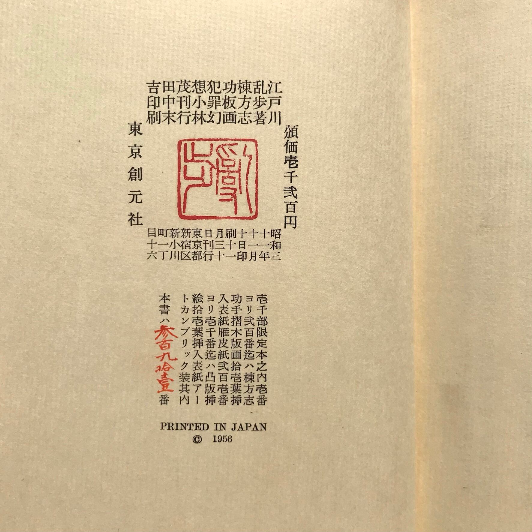 江戸川乱歩著 昭和31年11月30日初版 東京創元社 全331頁 16.5×21×3.5センチ