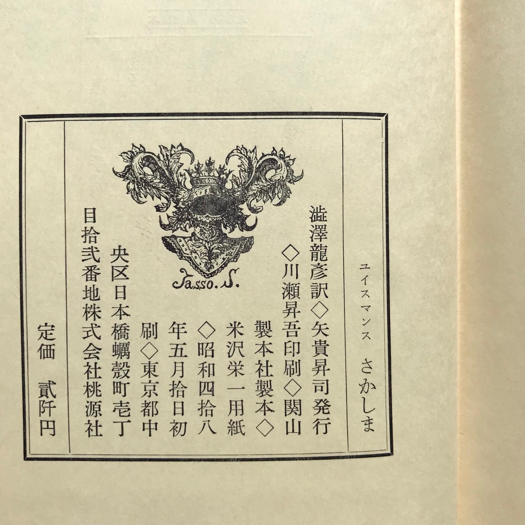 ユイスマン 澁澤龍彦訳 昭和48年5月10日初版 全390頁 16×22×4センチ