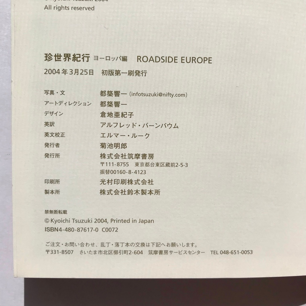 都築響一著 2004年3月25日初版 筑摩書房 全383頁 16×20×3センチ