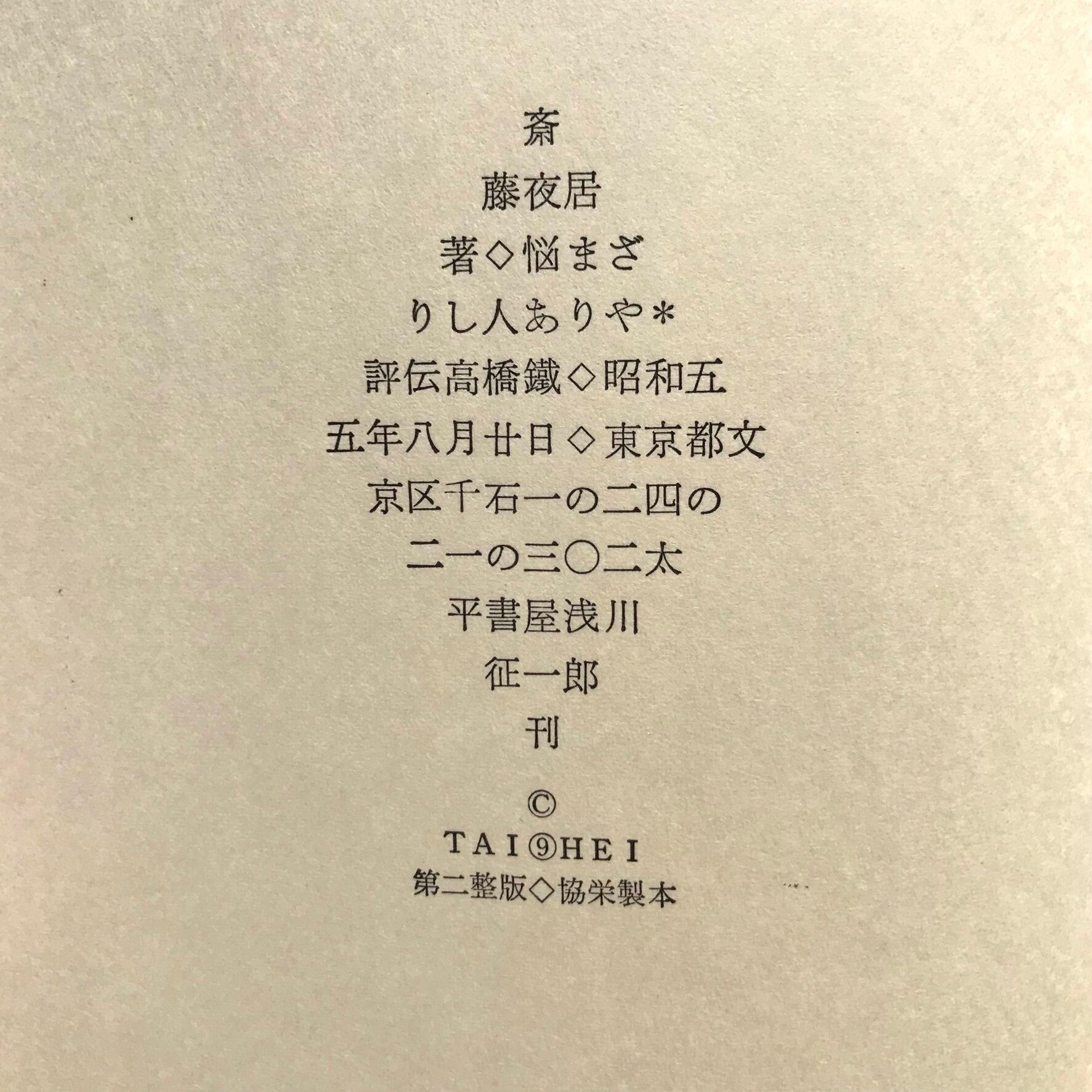 斎藤夜居著 昭和55年8月20日発行 太平書屋 全290頁 17.5×24×4センチ