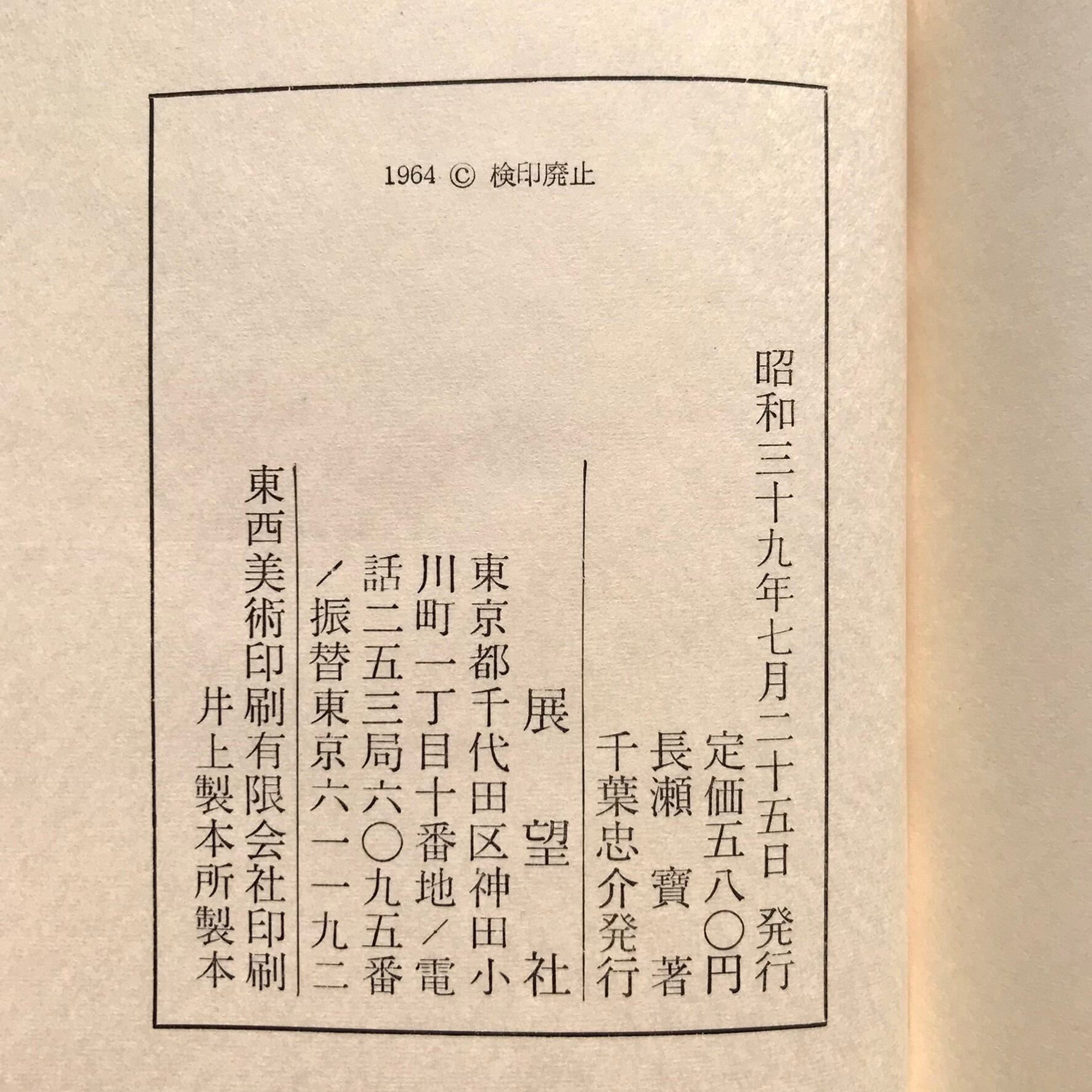 長瀬寶著 昭和39年7月25日初版 展望社 全200頁 16×22×1.8センチ