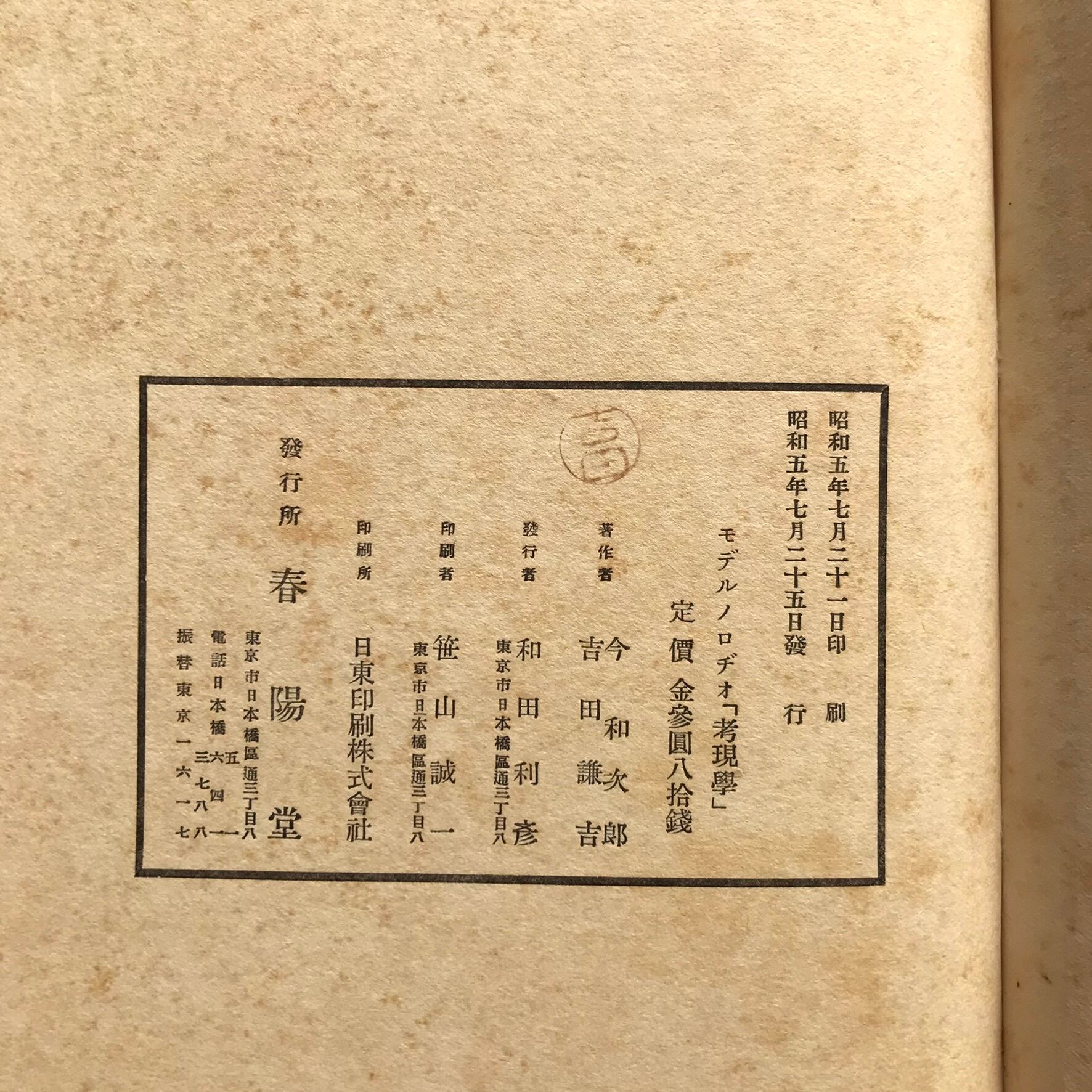 今和次郎・吉田謙吉編著 昭和5年7月25日初版 春陽堂 全361頁 20×26×3.4センチ