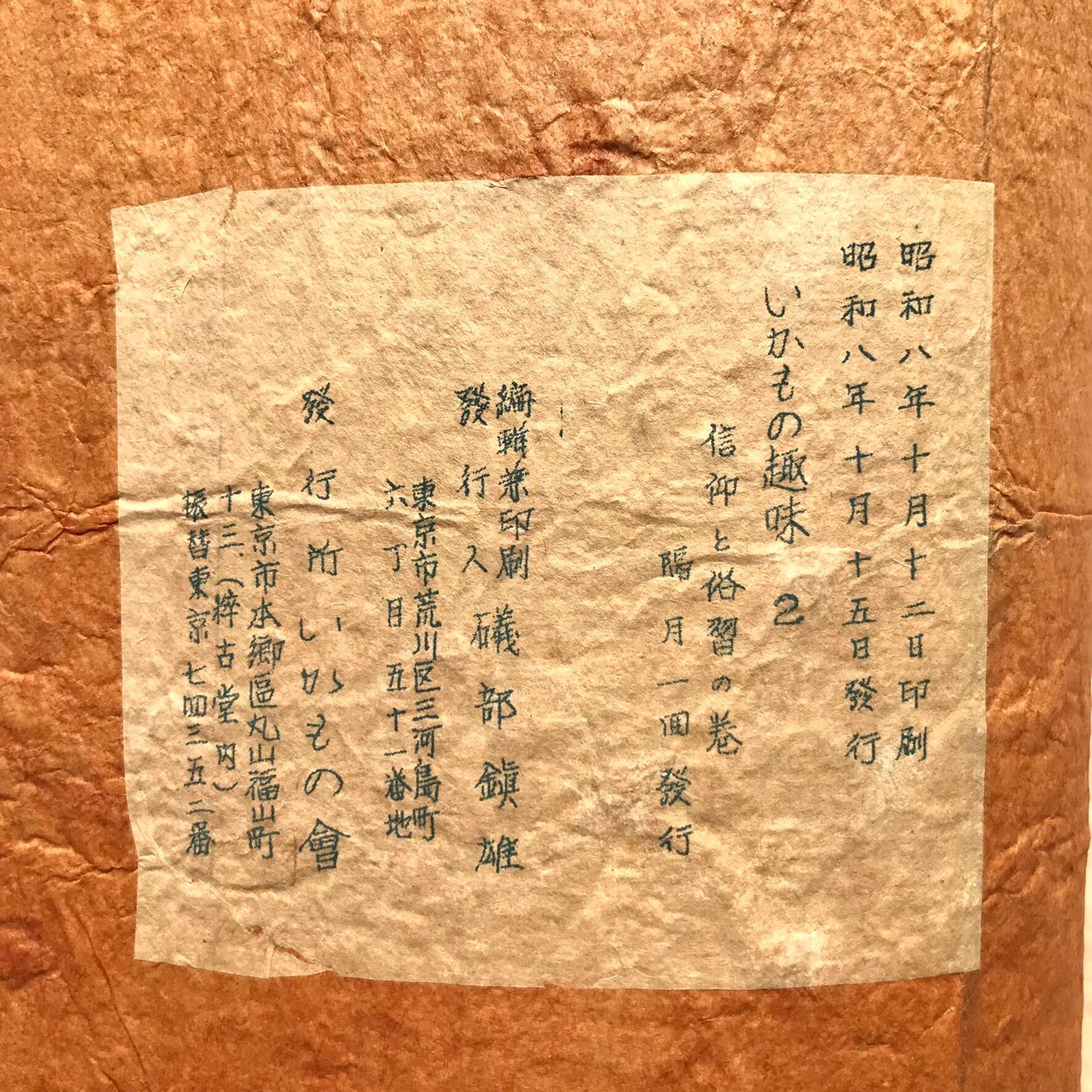 発行人・磯部鎮雄 昭和8年10月15日発行 いかもの会(粋古堂内) 15.5×23×0.8センチ