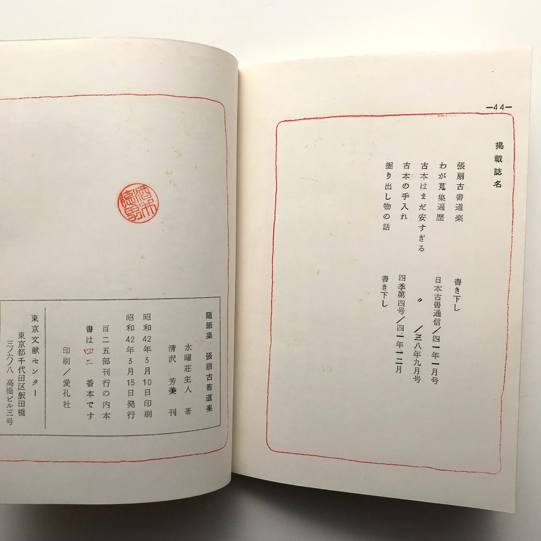水曜荘主人著 昭和42年3月15日発行 東京文献センター 全44頁 15×20×2.5センチ