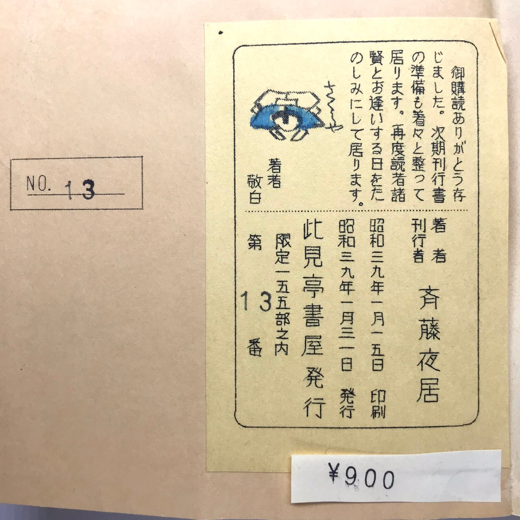 斉藤夜居著 昭和39年1月3日 比見亭書屋 156頁 16×22.5×1.8センチ