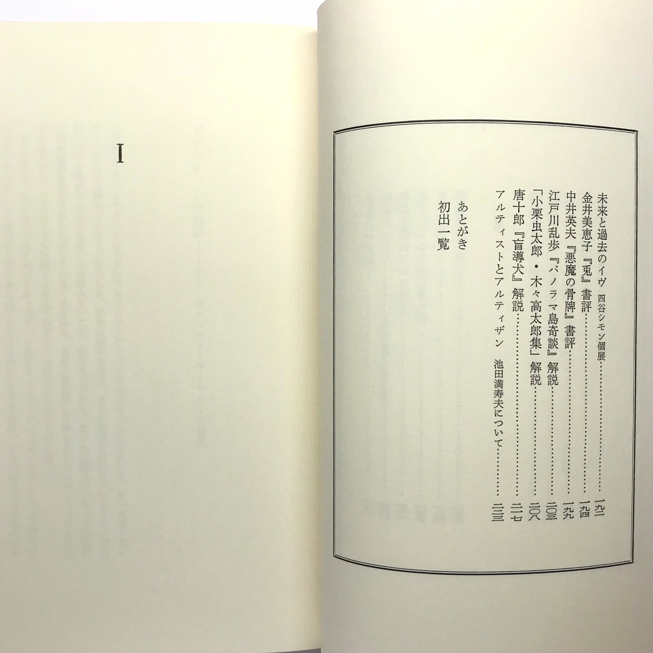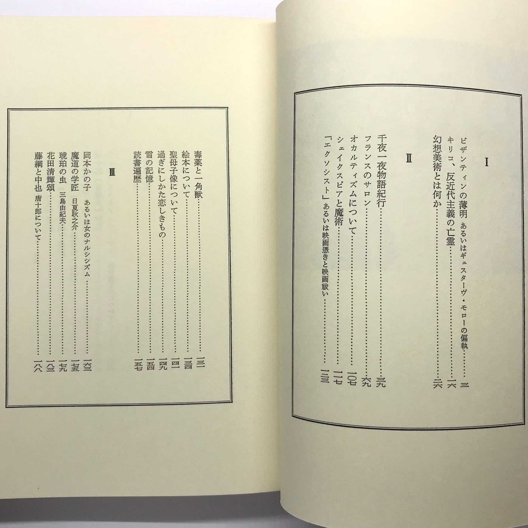 中東旅行の記録。花田清輝、日夏耿之介等偏愛作家への賛辞。幻想、オカルト、魔術等。