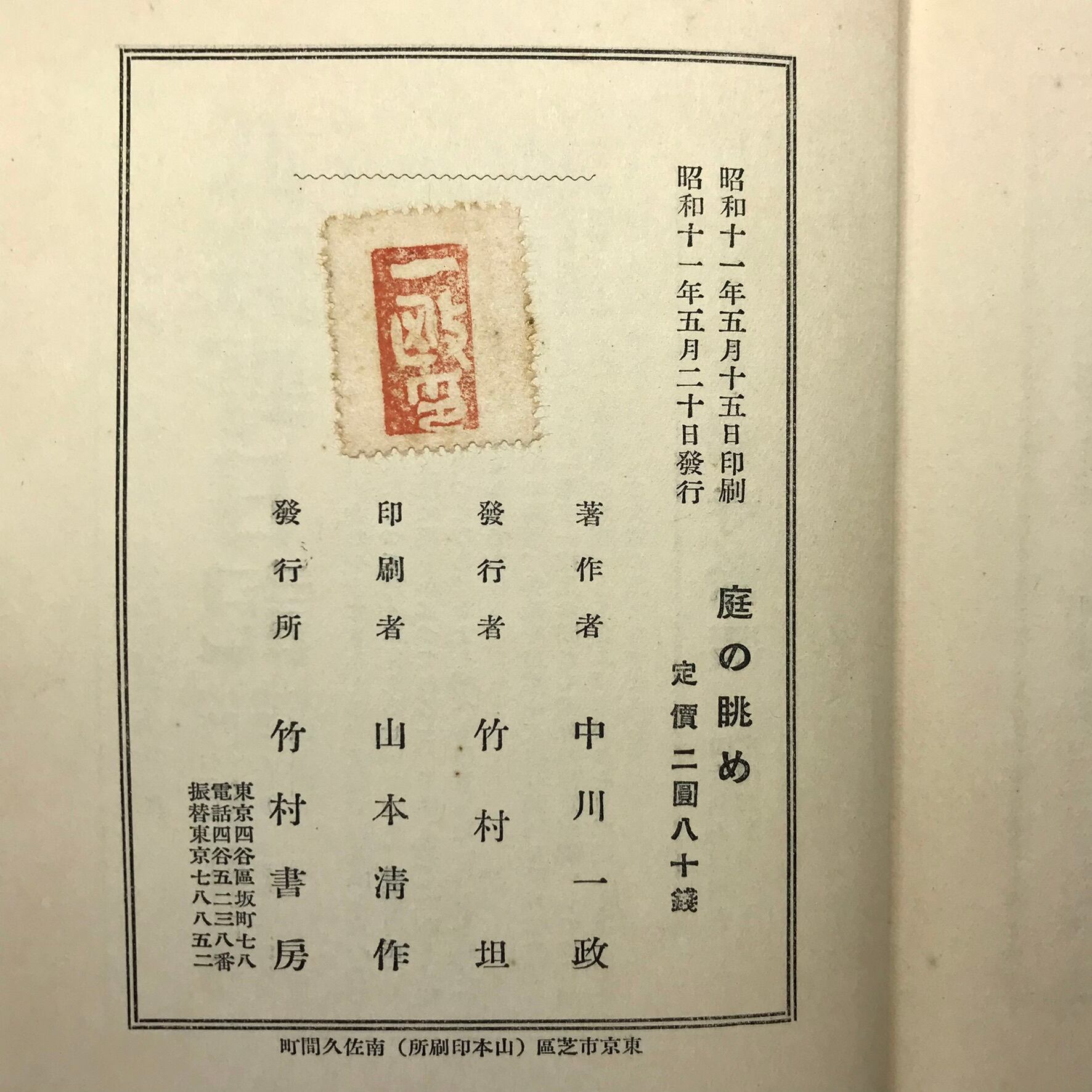 中川一政著 昭和11年5月20日初版 竹村書房 全283頁 15.5×20×3センチ