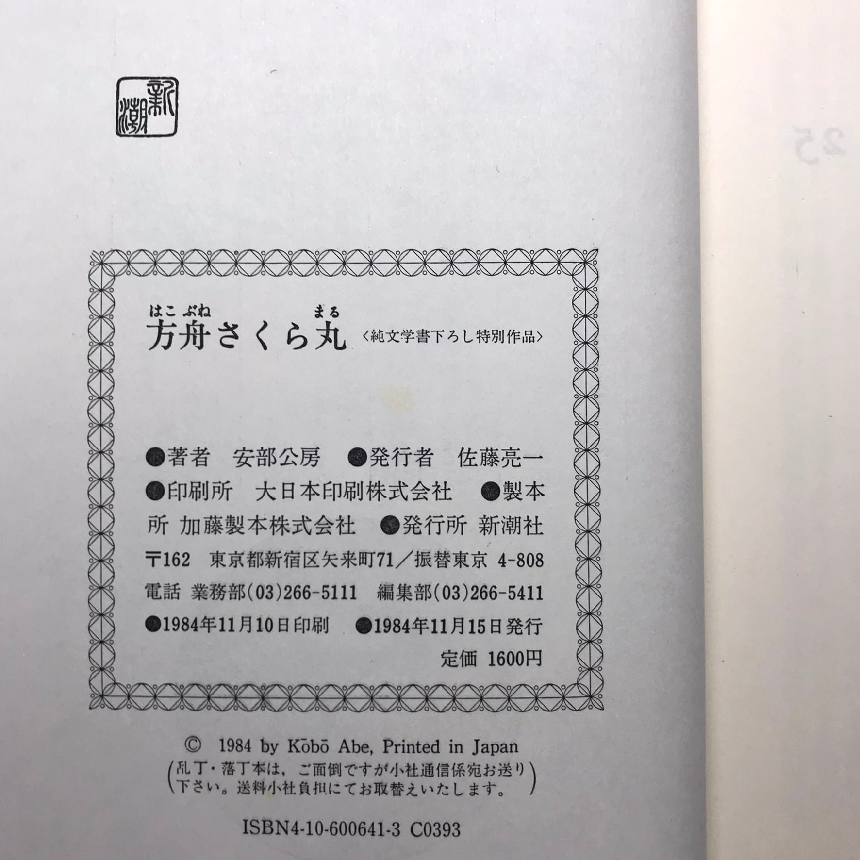 安倍公房著 1984年11月15日初版 新潮社 全300頁 14×20×2.8センチ