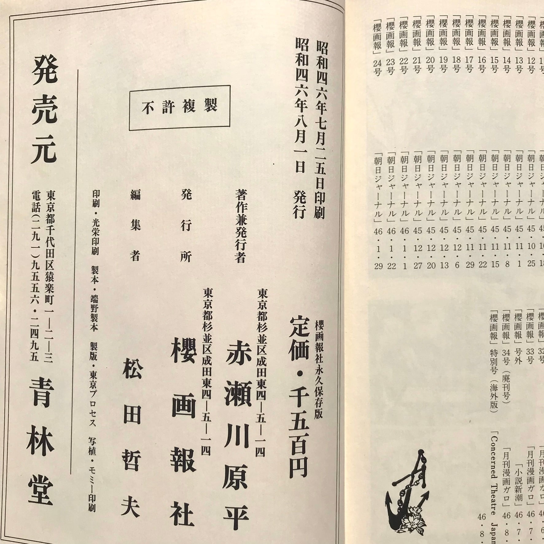 赤瀬川原平著 昭和46年8月1日初版 青林堂 全290頁 19×27×2.9センチ