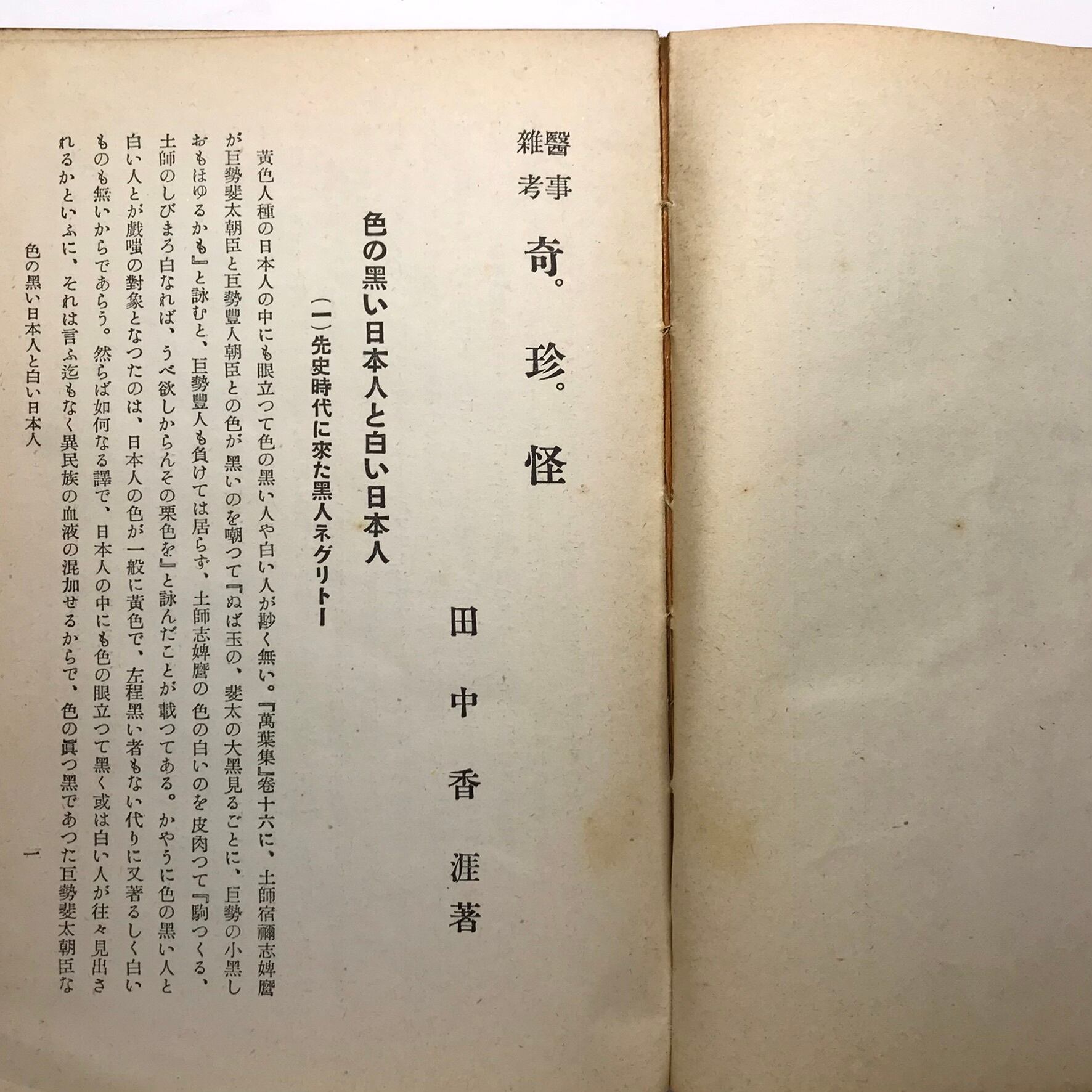 田中香涯著 昭和15年1月6日初版 鳳鳴堂書店 全301頁 13×19×1.5センチ