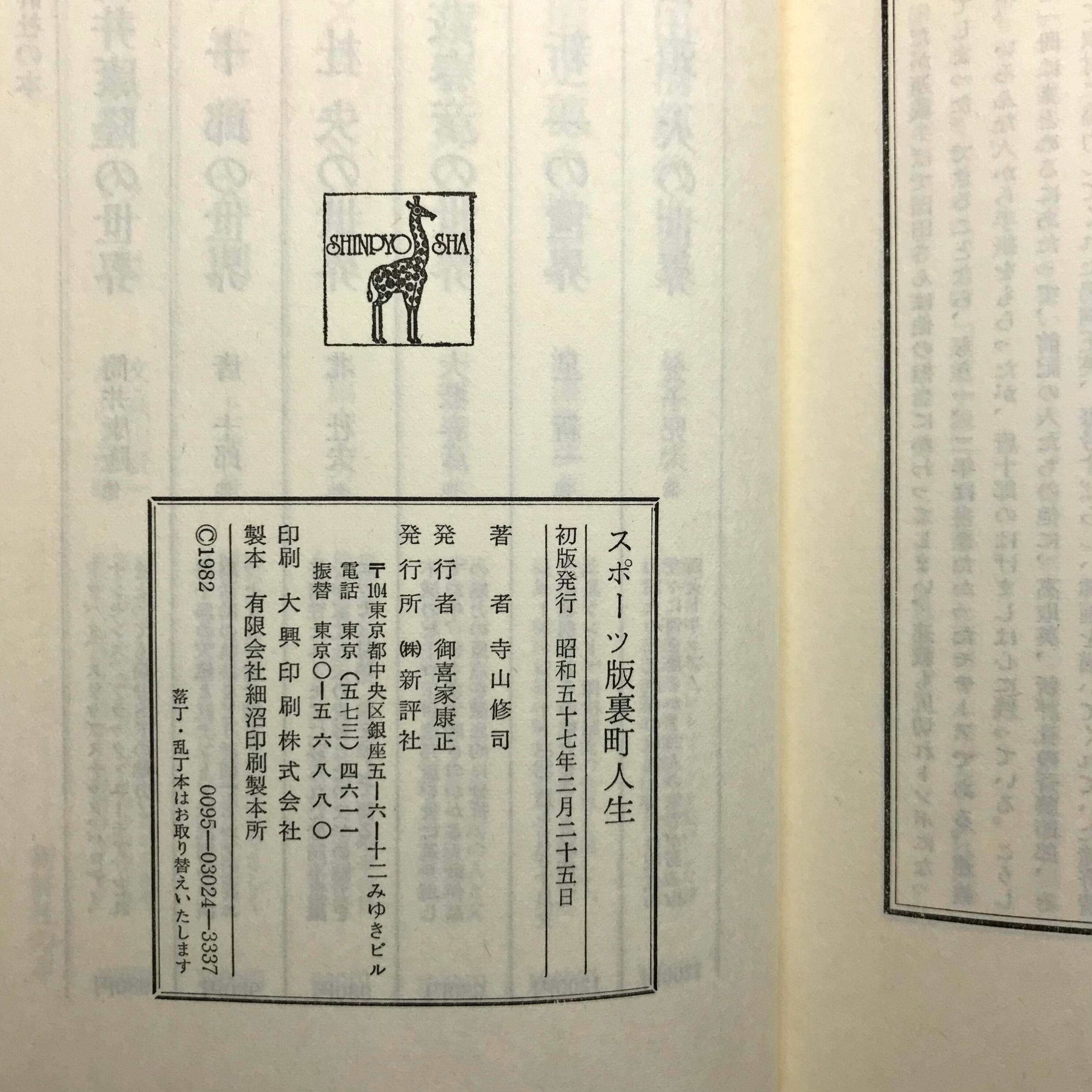 寺山修司著 昭和57年2月25日初版 新評社 全217頁 13×19×1.5センチ