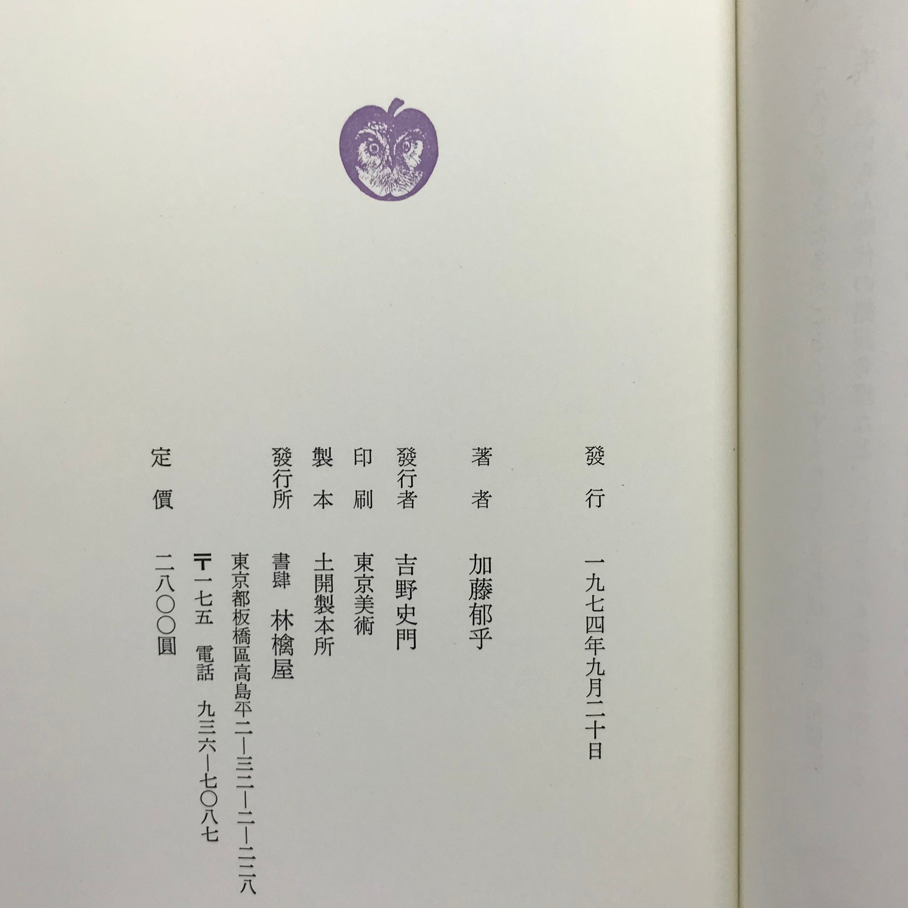 加藤郁乎著 1974年9月20日発行 書肆・林檎屋 全103頁 14×20.5×2センチ